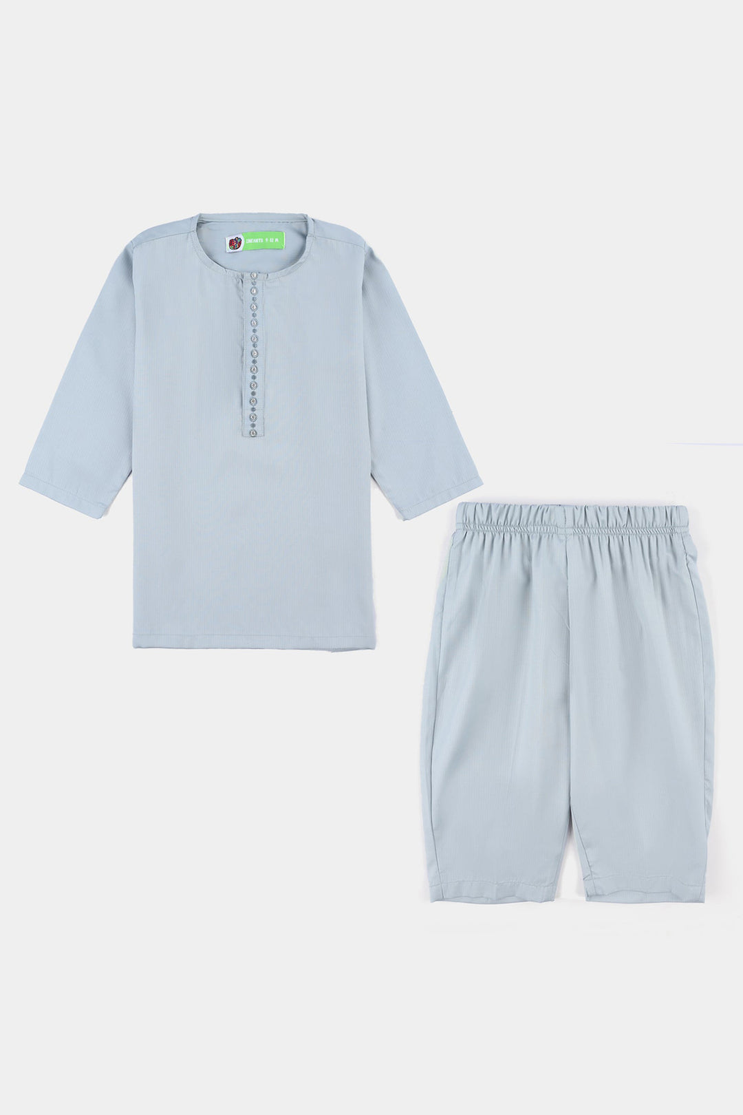 Infant Boys Poly Viscose Kurta Pajama (Lurex Dots)-Sky.Grey