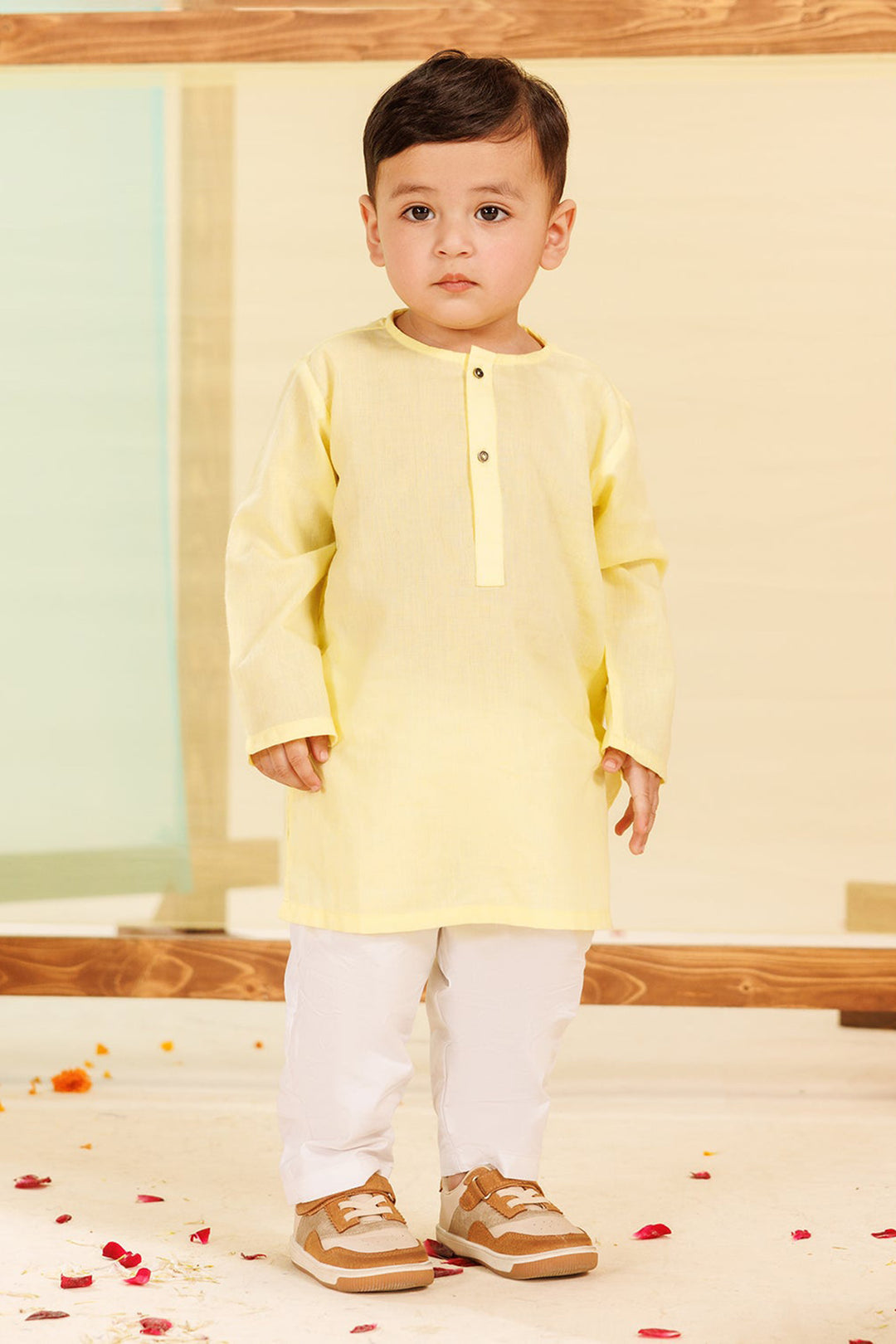 Infants Boys Poly Viscose Basic Kurta (Burn Out)-Yellow