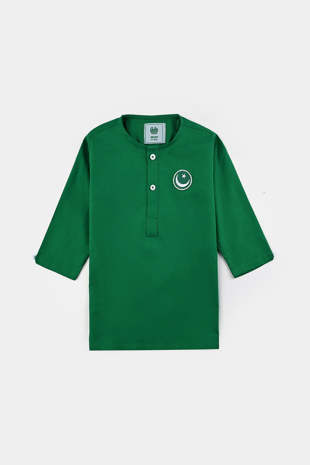 Infant Boys Cotton Poplin Kurta (Basic Funk)-GREEN