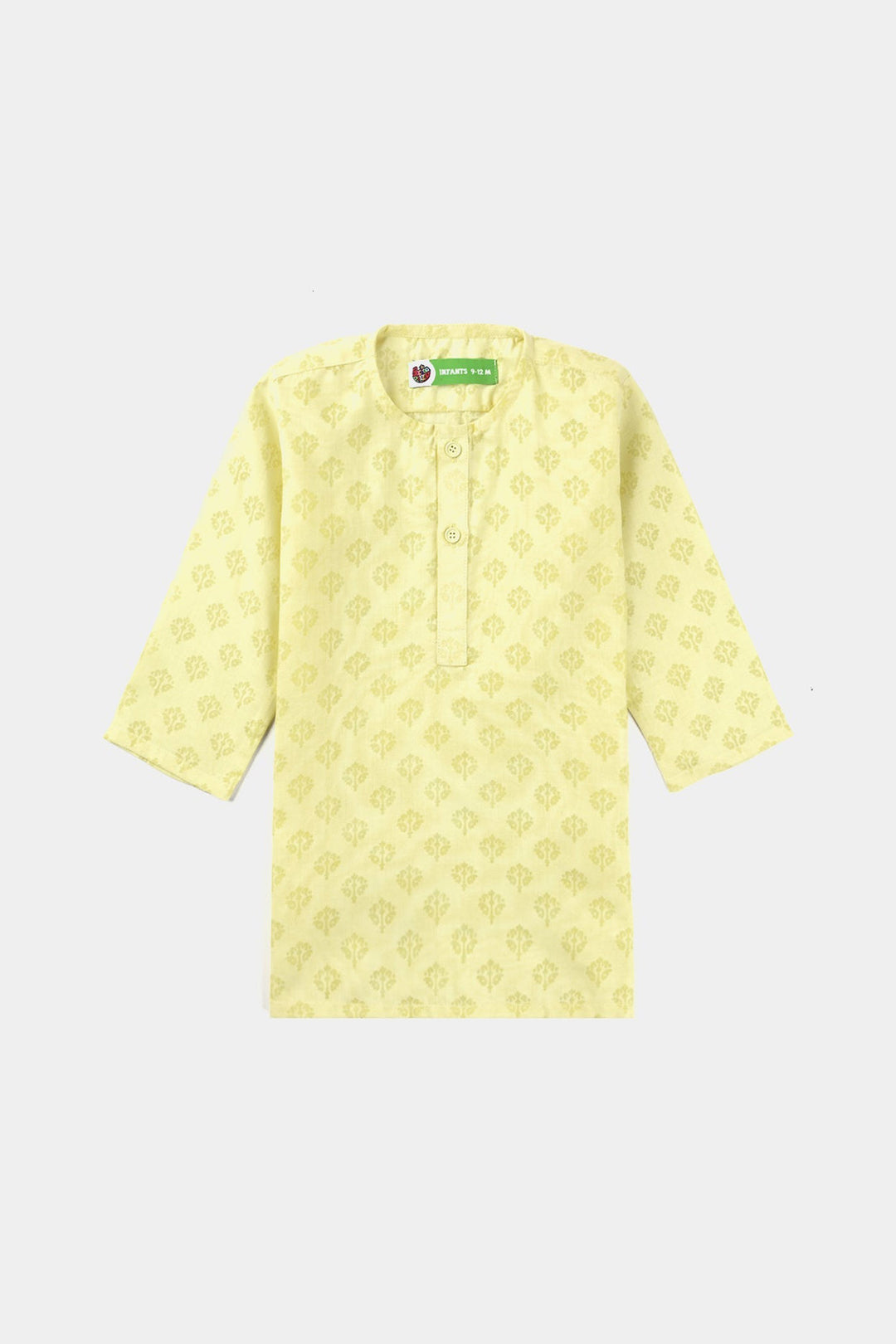 Infants Boys Cotton Jacquard Basic Kurta (VIBRANT)-Yellow