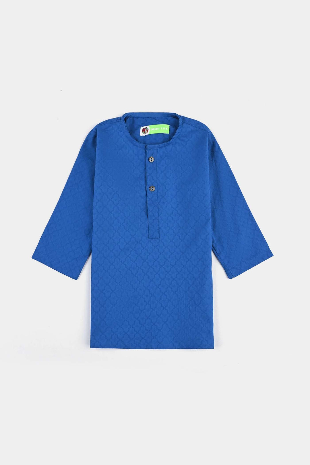 Infant Boys Cotton Basic Kurta (Ogee Pattern)-Blue