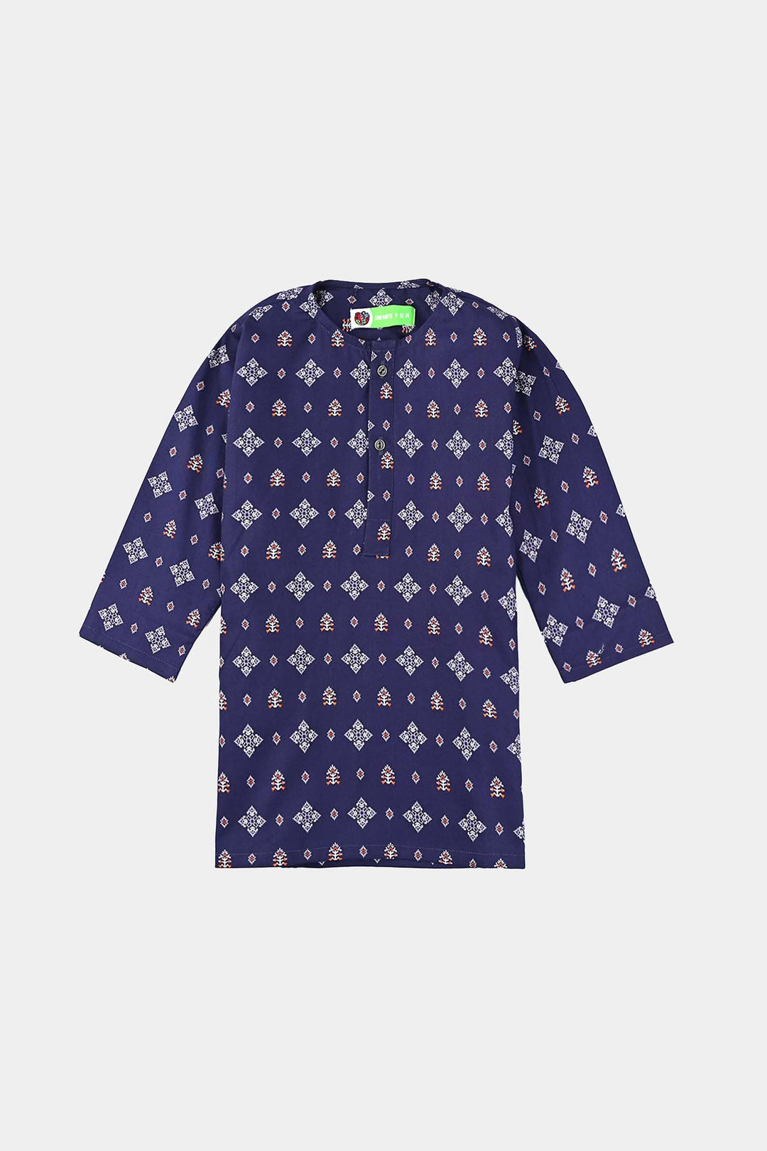 Infant Boys Cotton Printed Kurta (Tribal Motif)-Blue