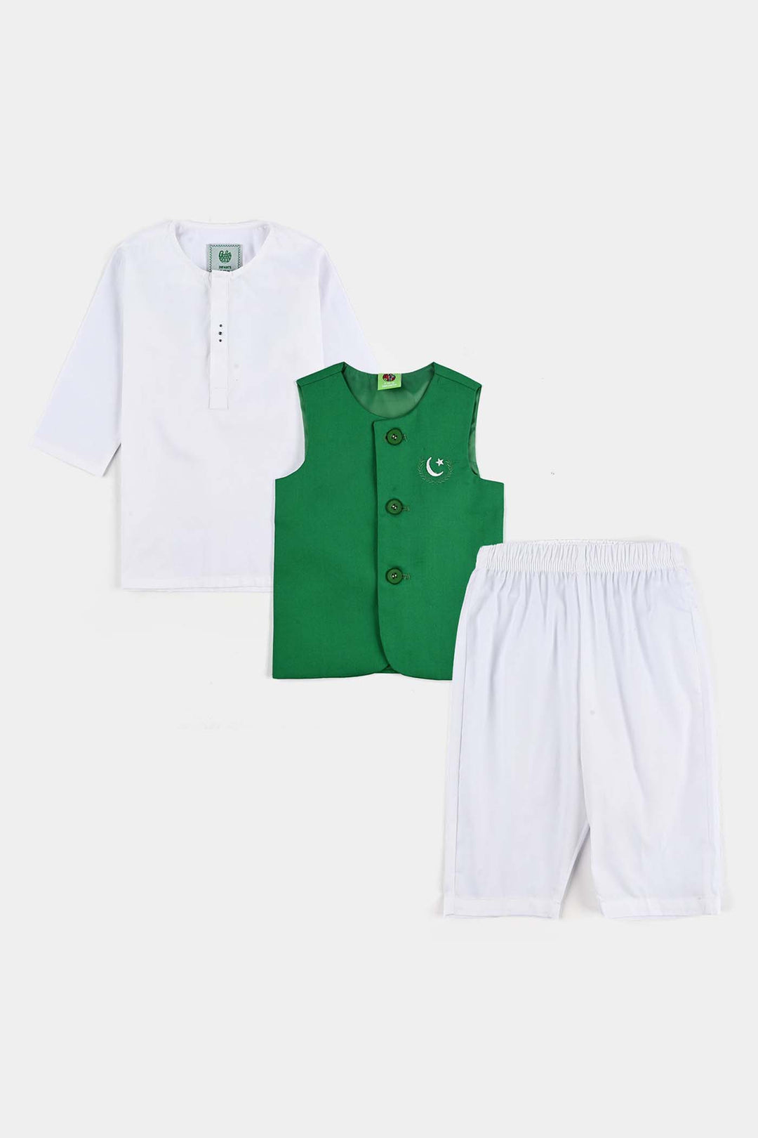 Infant Boys Cotton Poplin Printed Kurta Independence Day-GREEN