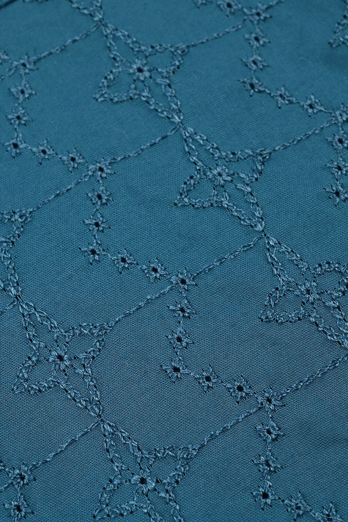 Infant boys' teal Blue cotton poplin kurta featuring full sleeves, embroidered Lynos Chicken Kari design, and a classic round neck, perfect for a stylish and comfortable everyday look.