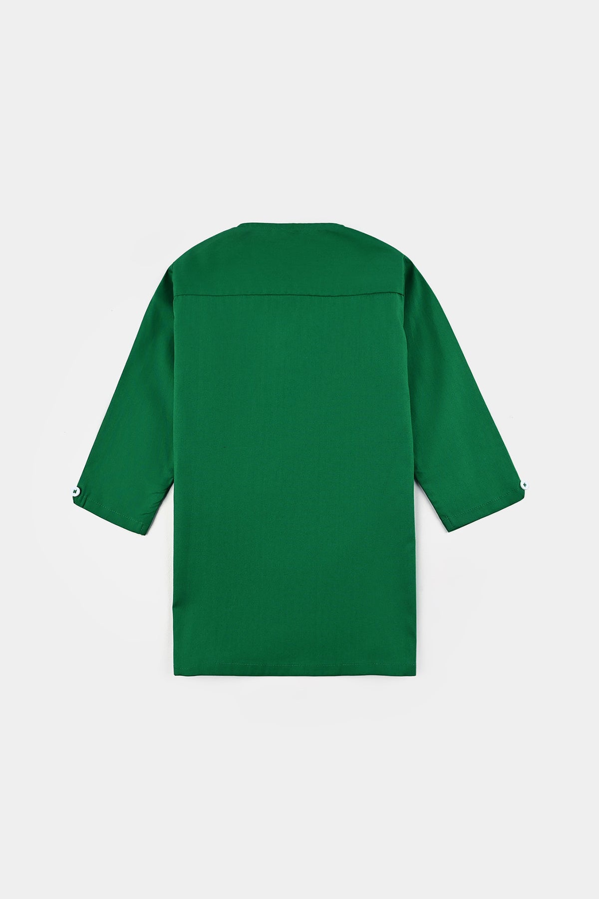 Stand out in style with this green kurta featuring the flag motif on the chest and contrast white buttons. Made of breathable fabric for all day comfort.