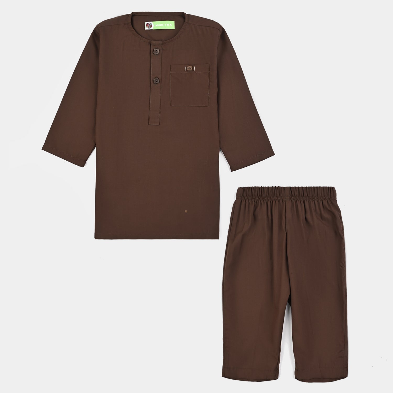 Embrace traditional charm with this elegant two-piece Eastern wear. Features a round-neck kurta with a button placket, paired with straight pajamas.