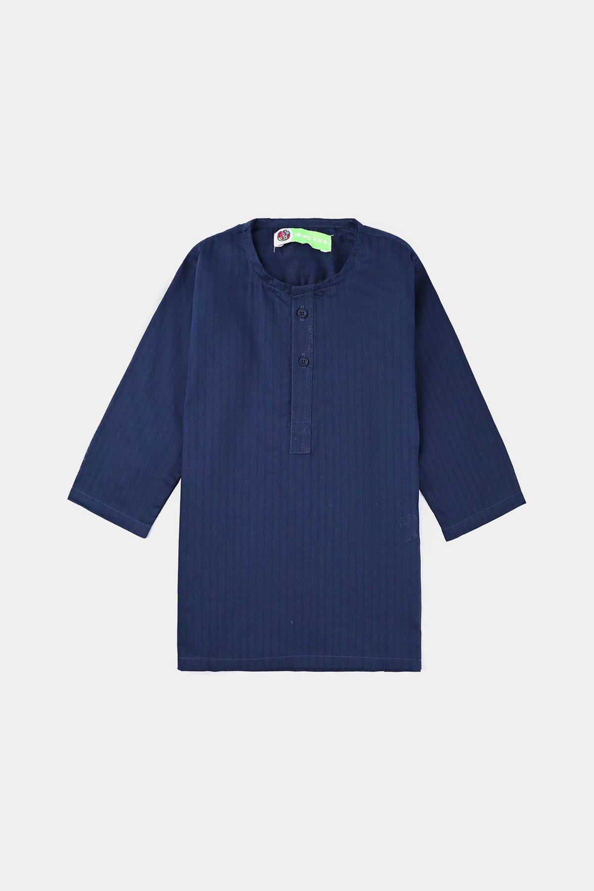 Embrace sophistication in every detail with this kurta draped in a navy blue hue. Features a round neckline with a button placket, full-length sleeves.