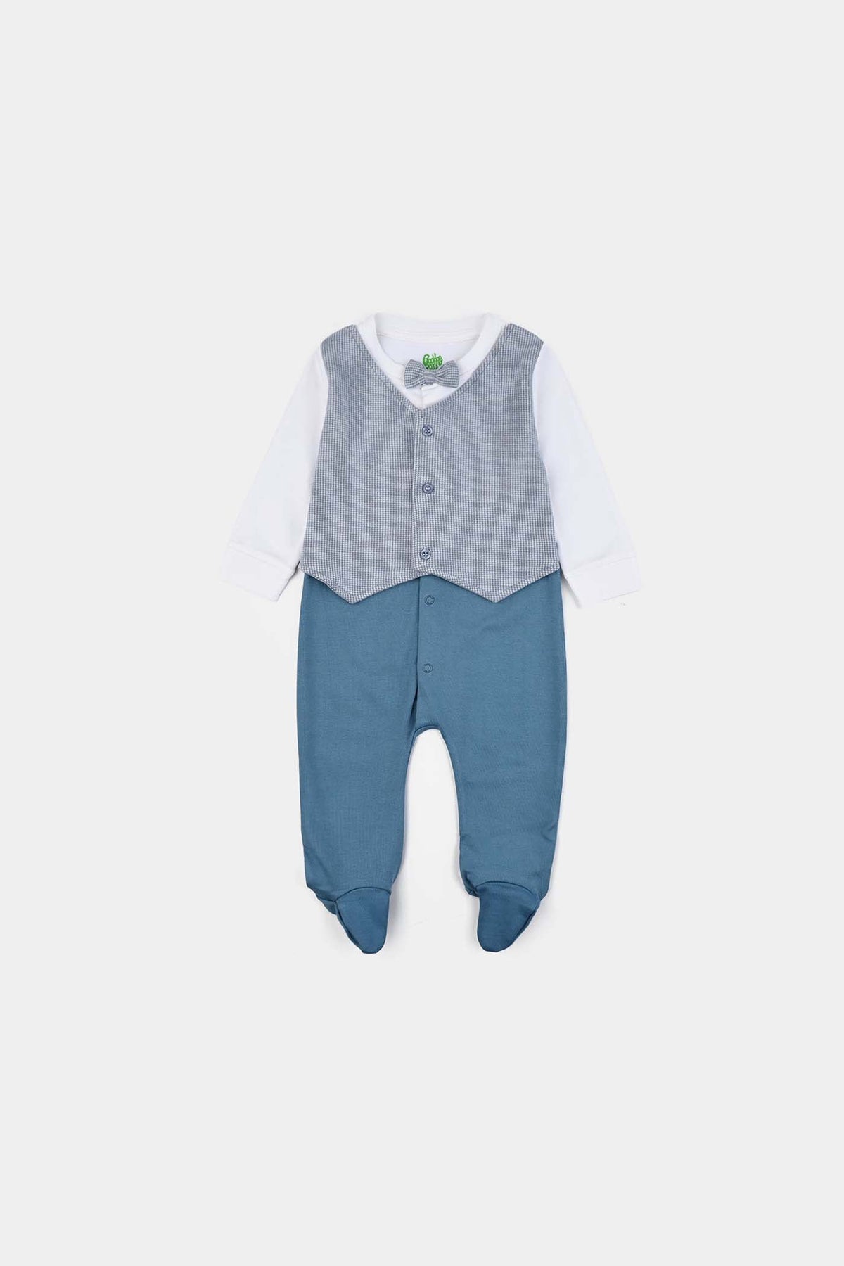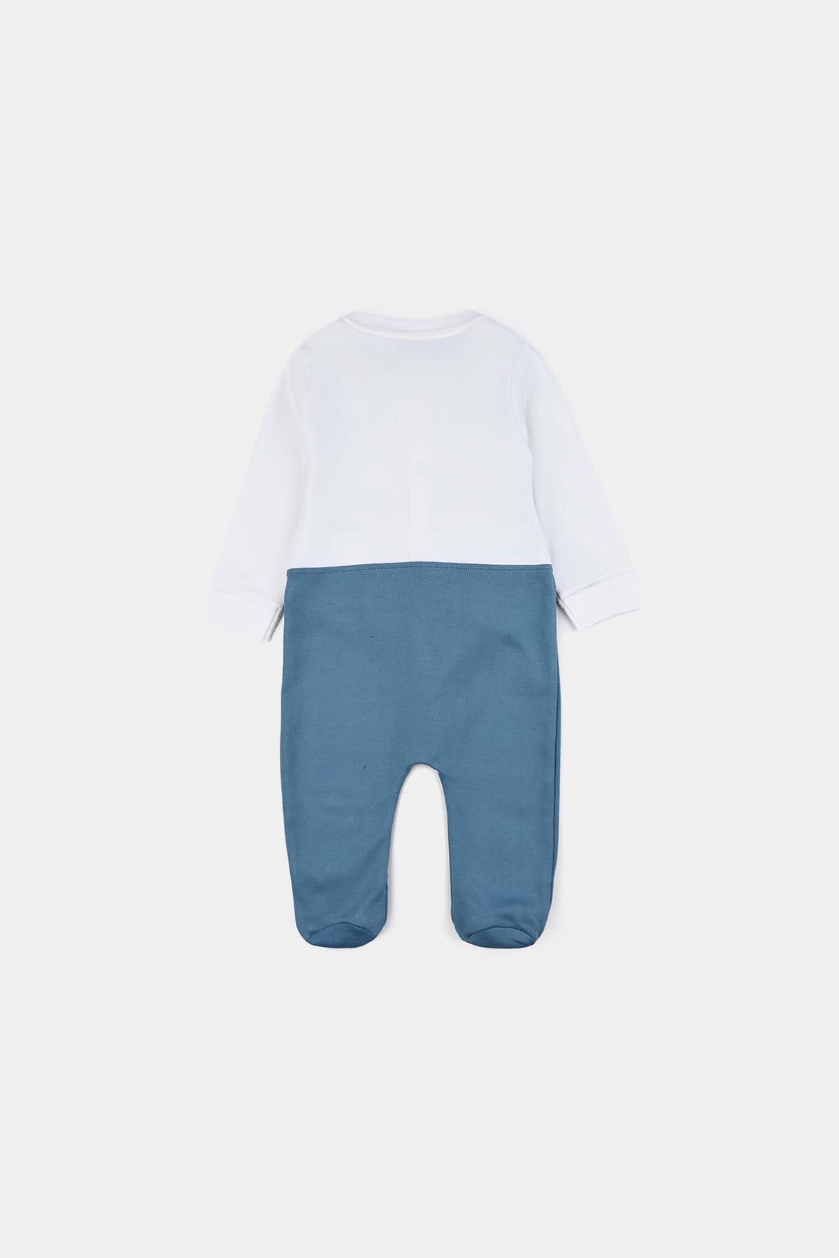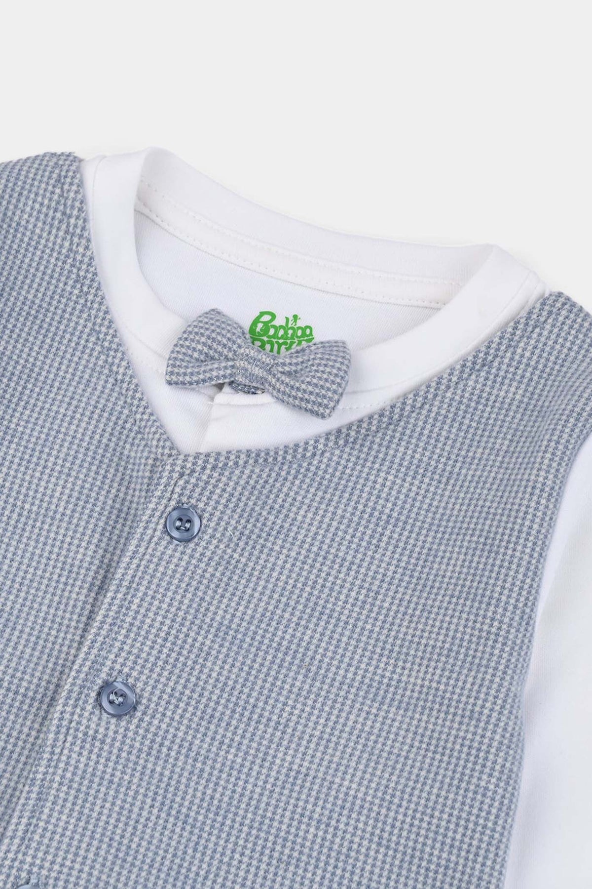 Infant Boys Cotton Interlock Romper Jacquard Coat Style-BLUE