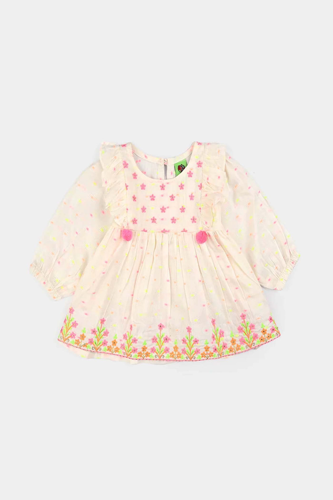 Infant Girls Cotton Poplin Emb 2Pcs Sehar-Cream