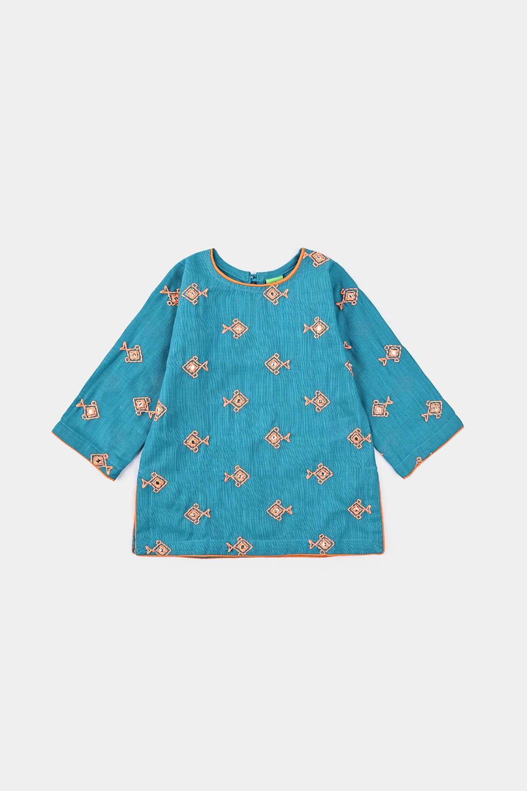 Infant Girls Cotton Slub EMB Kurti Little Fishes