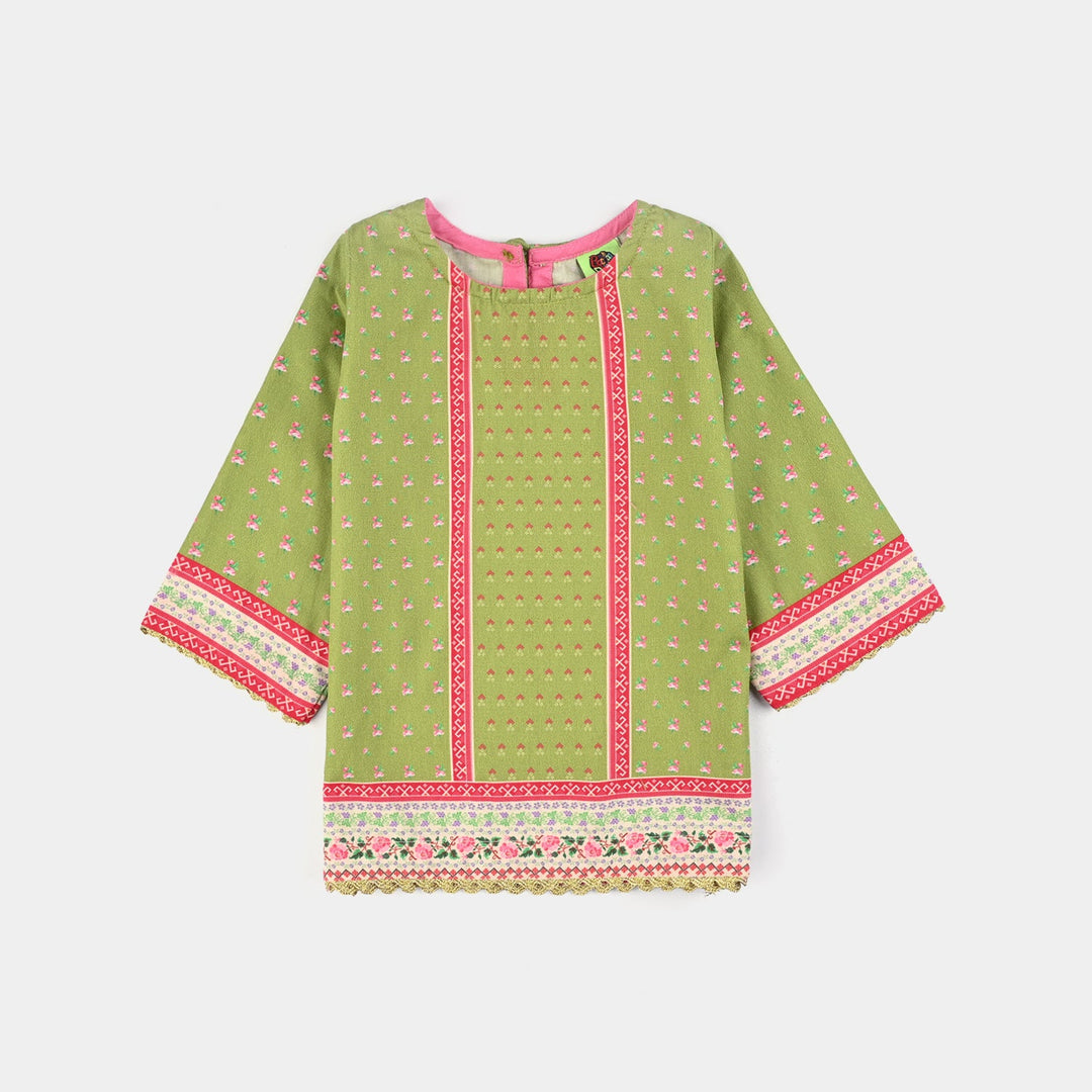 Infant Girls Cotton Poplin Printed Kurti Desi Green