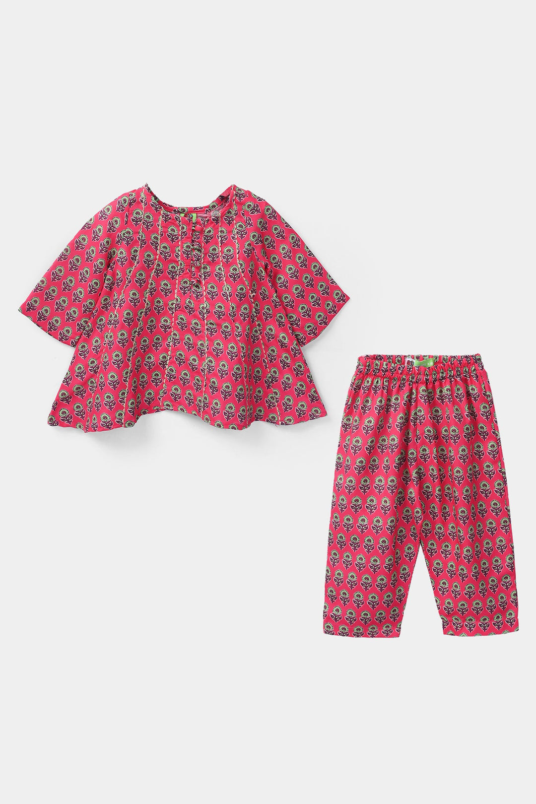 Infant Girls Cotton Poplin Printed 2 Pcs Surkh Phool-Multi