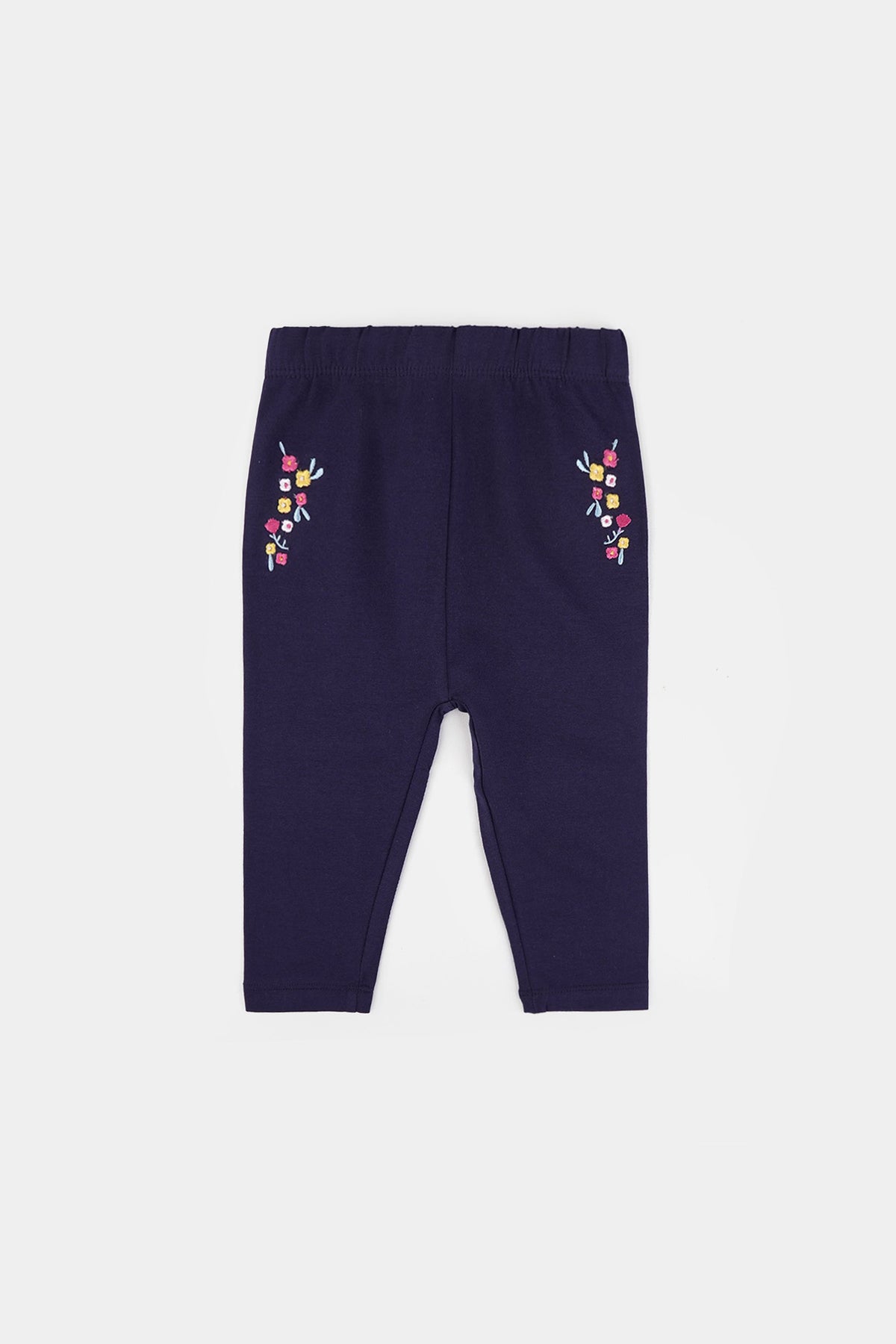 Infant Girls Jersey/Terry Emb Tights Flowers-NAVY