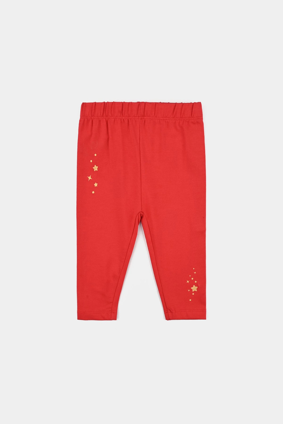 Infant Girls Jersey/Terry Printed Tights STARS-Chine .Red