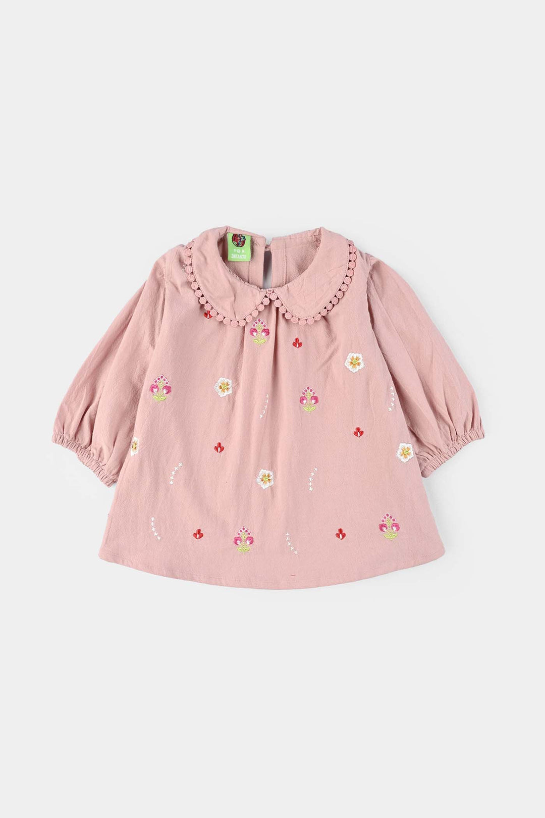 Infant Girls Cotton Emb Top Peter Pan-Pink