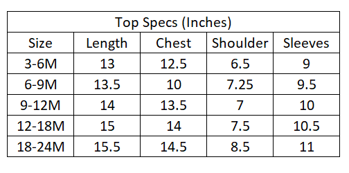 SIZE CHART NOTE: Please allow 0.5 inch +/- tolerance due to manual measurement
