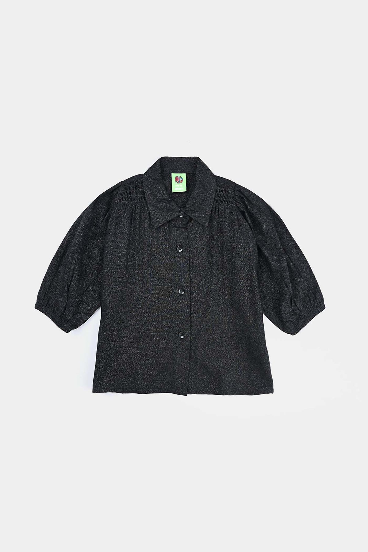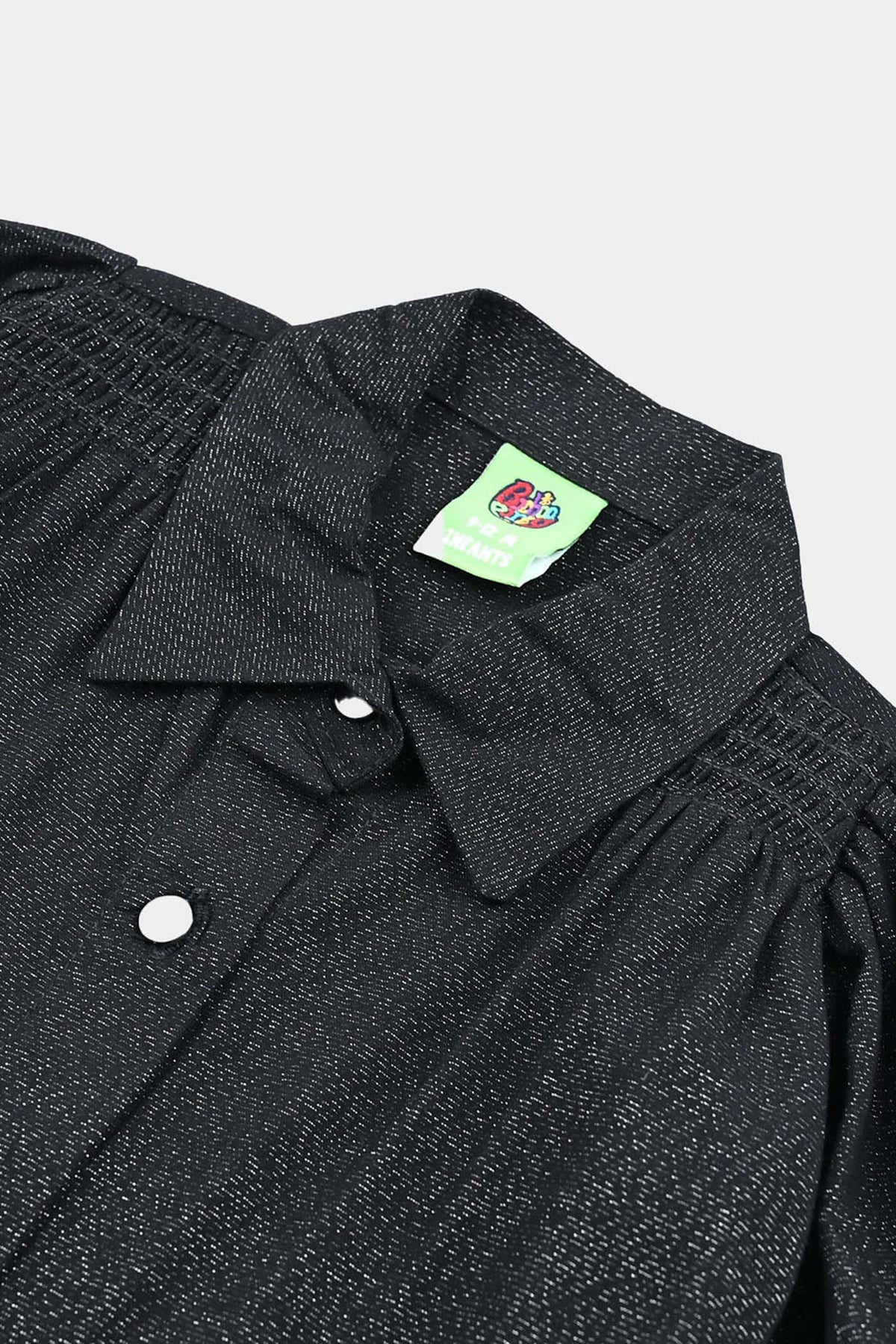 Look magical with this black top, which brings subtle glam to your look. Features a collar, button-through style, and full sleeves with gathers on the cuff.