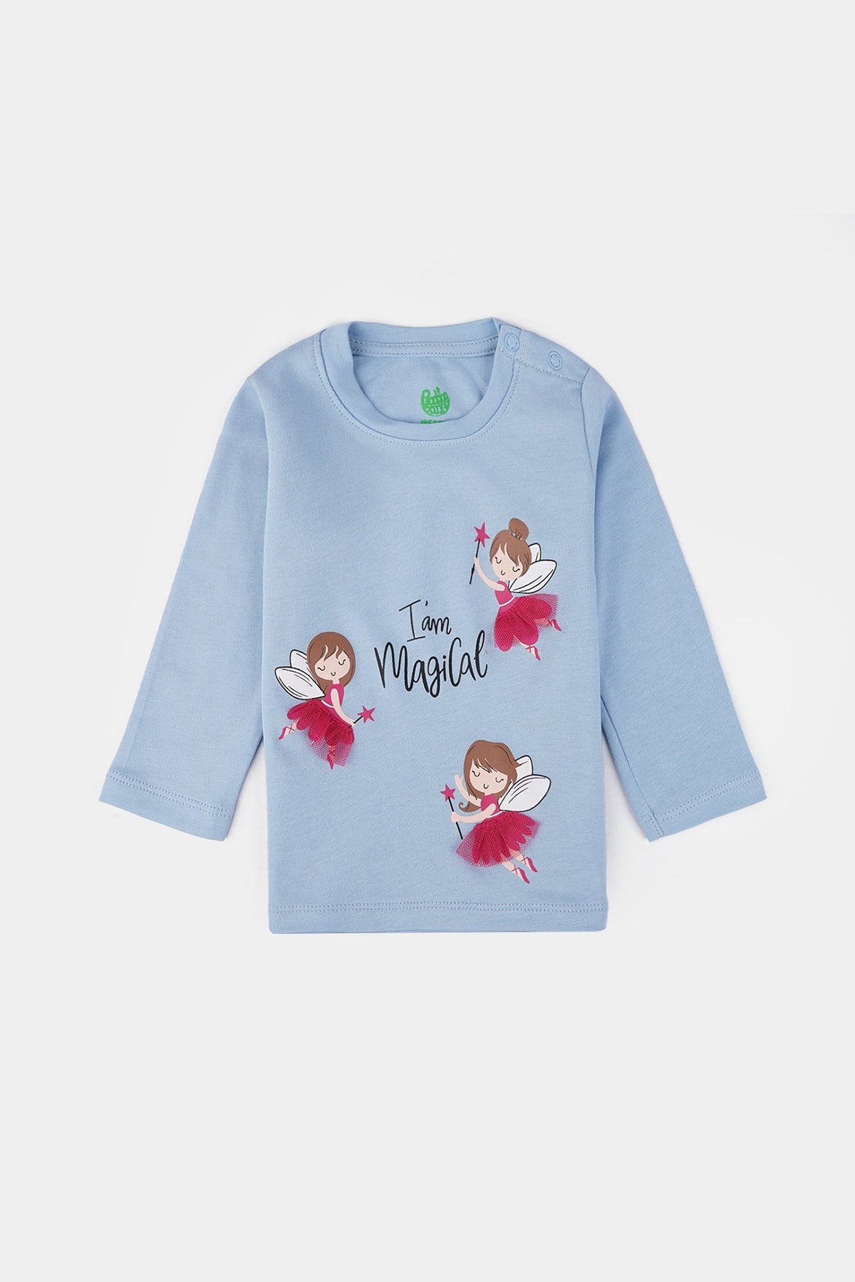 Bachaa Party brings you the best price Infant Girls Cotton Interlock Suit LITTLE FAIRY-Powder Blue with express shipping all over Pakistan.
