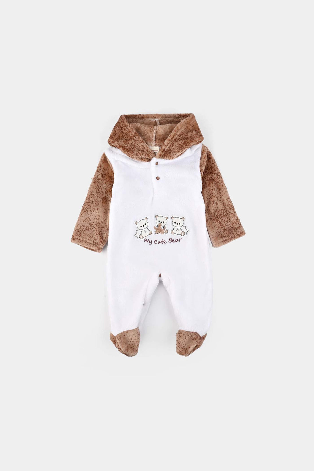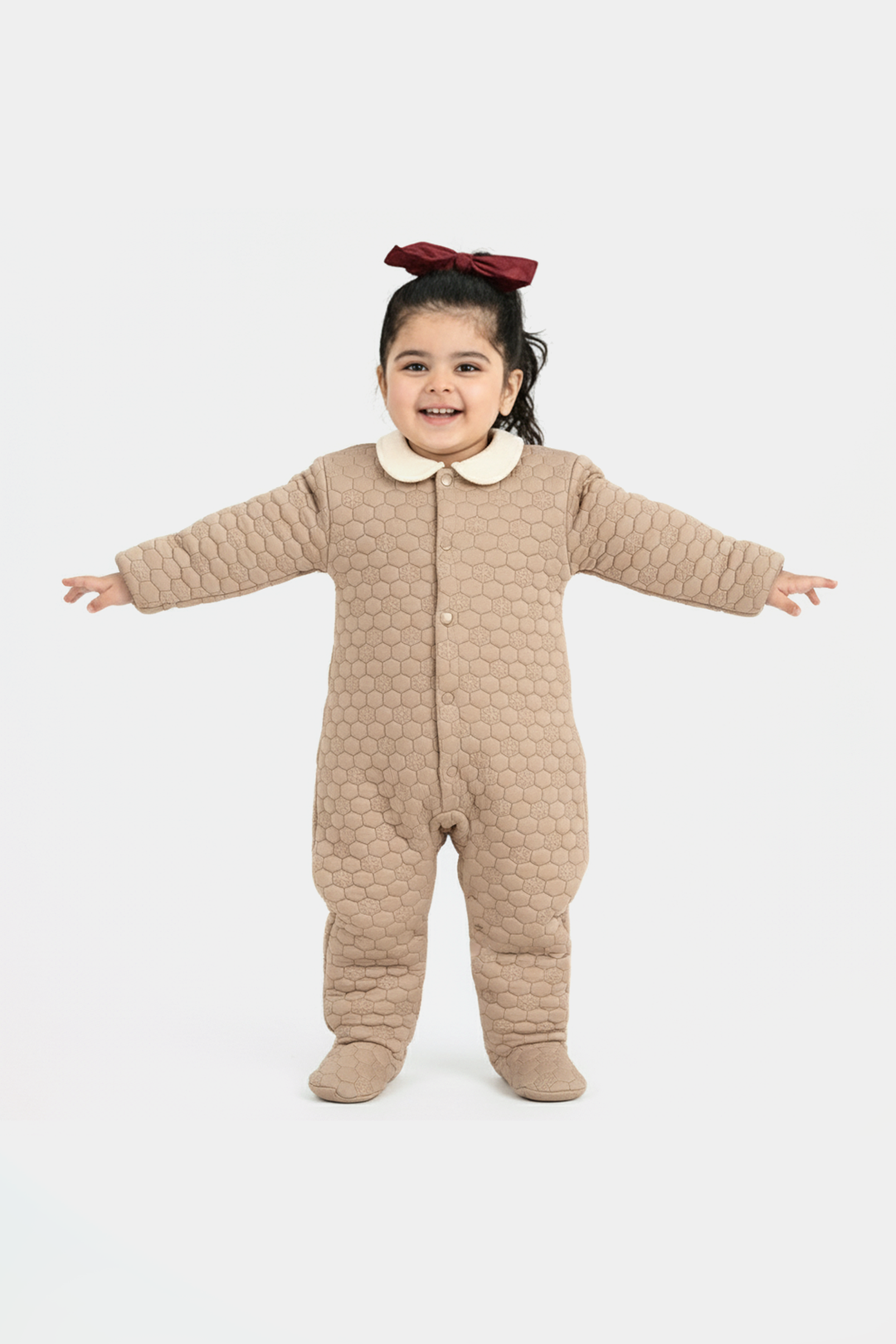Infant Girls Quilted Romper Smile Flower-BROWN