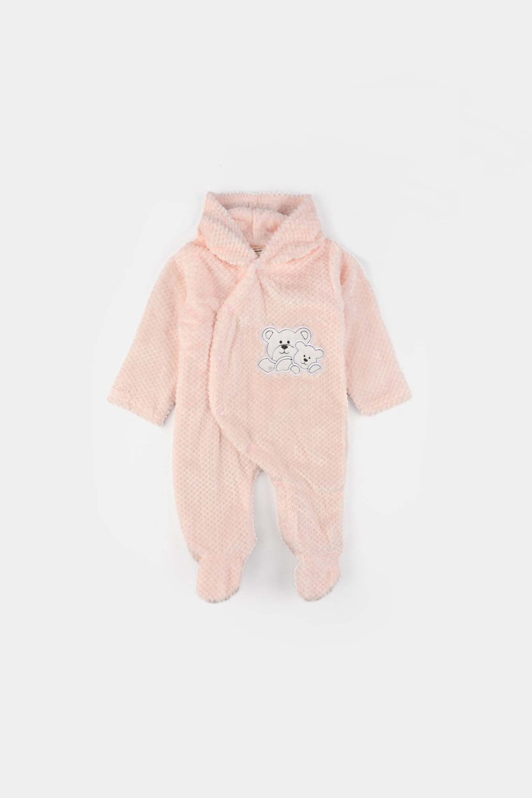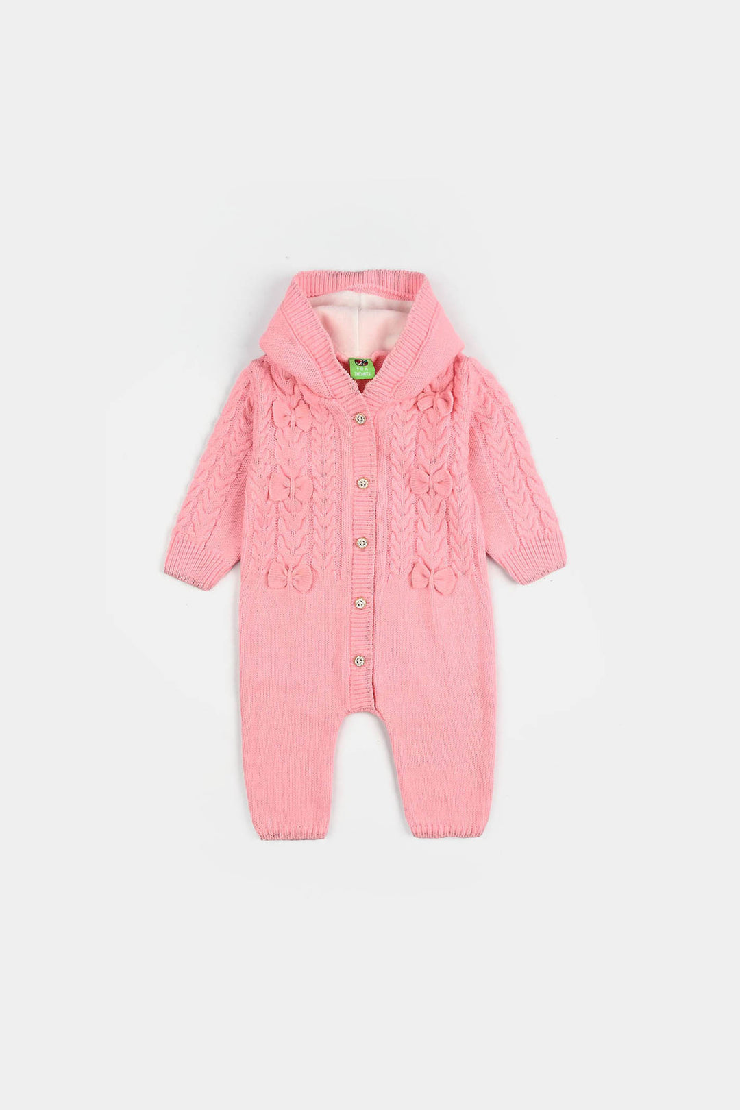 Infant Girls Acrylic Romper-Cable Bow - Light Pink