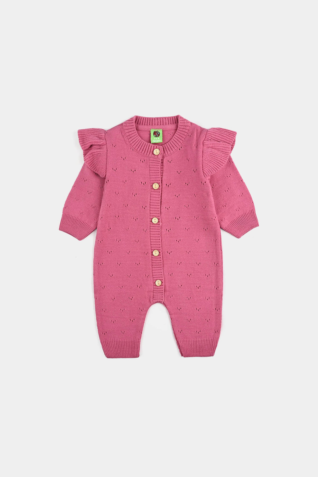 Infant Girls Acrylic Romper-Frill-Rose.Pink