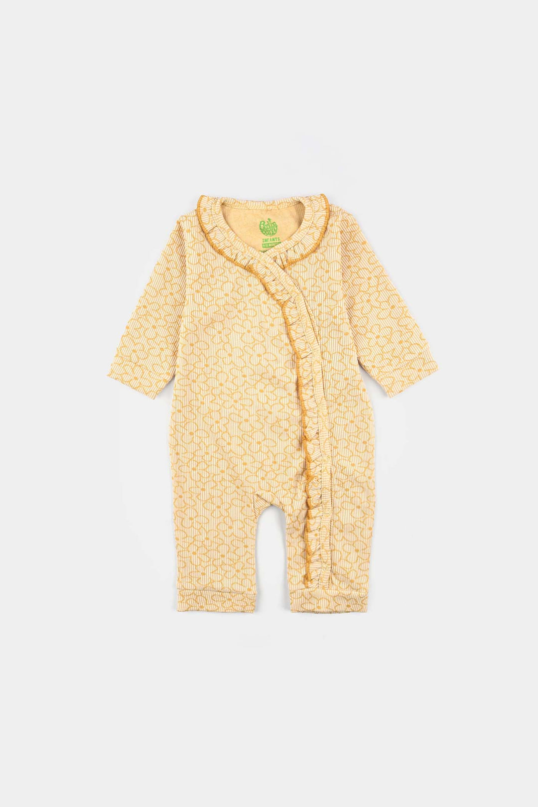 Infant Girls Jacquard Romper FLORAL FRILL - Yellow