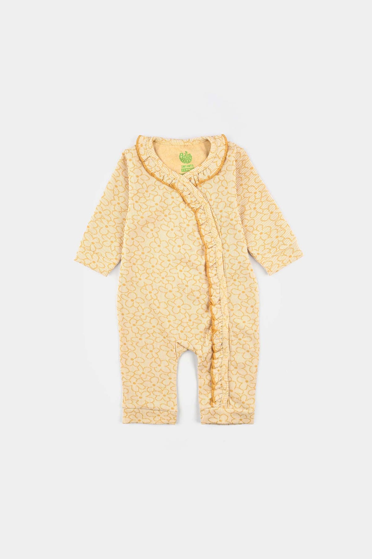 Infant Girls Jacquard Romper FLORAL FRILL - Yellow