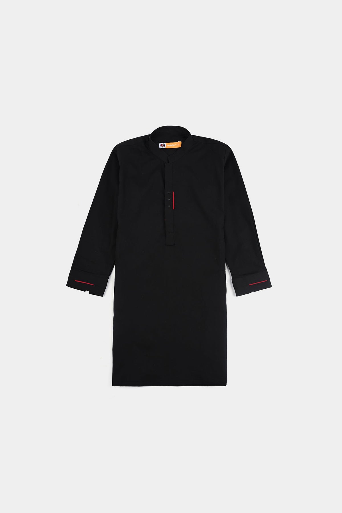 Boys Cotton Poplin Kurta Pajama (Black Studs)-BLACK