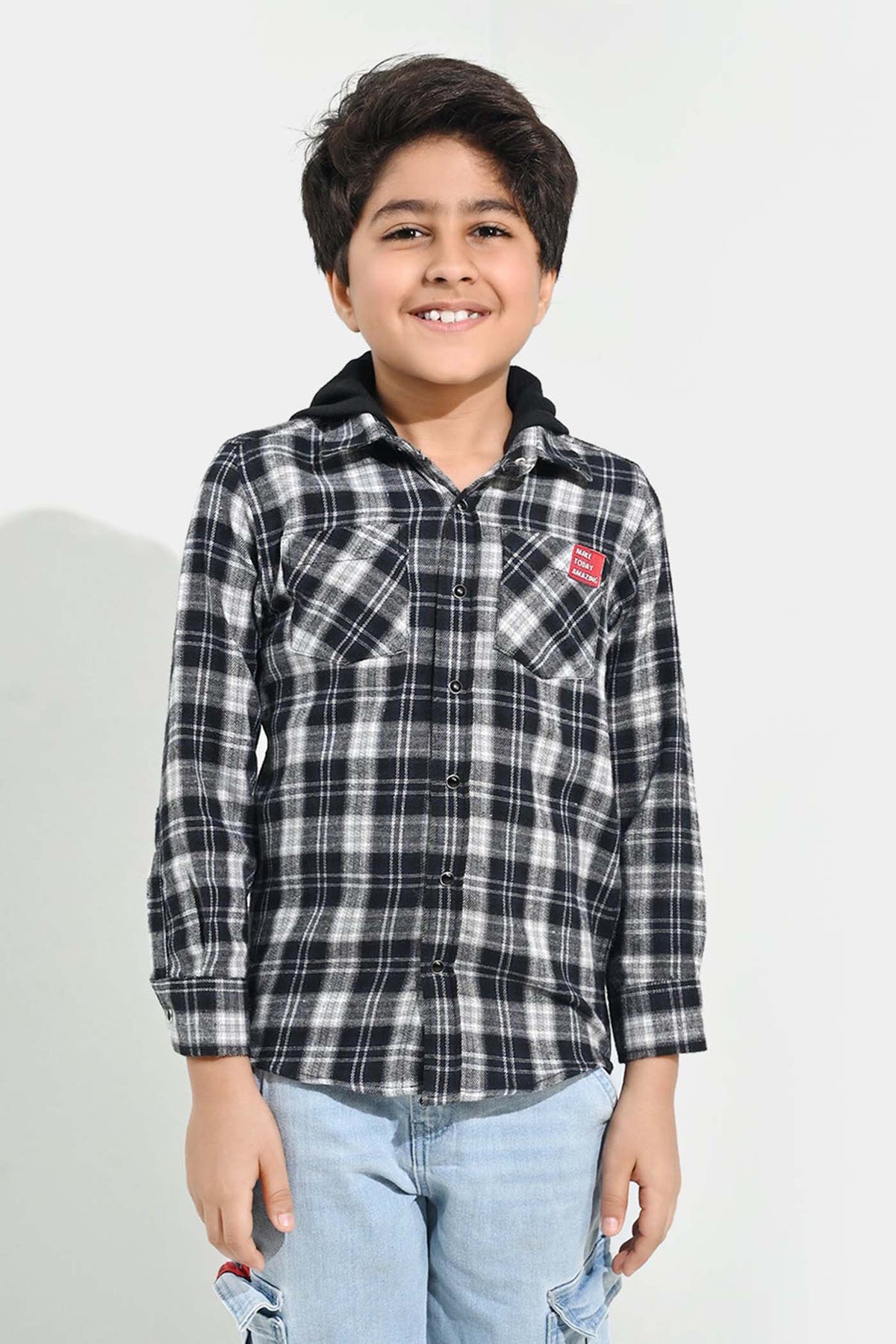 When comfort meets style! This hooded flannel shirt brings warmth and a laid-back vibe to his wardrobe. The full sleeves keep him cozy, while the hood adds a cool edge for those chilly days.