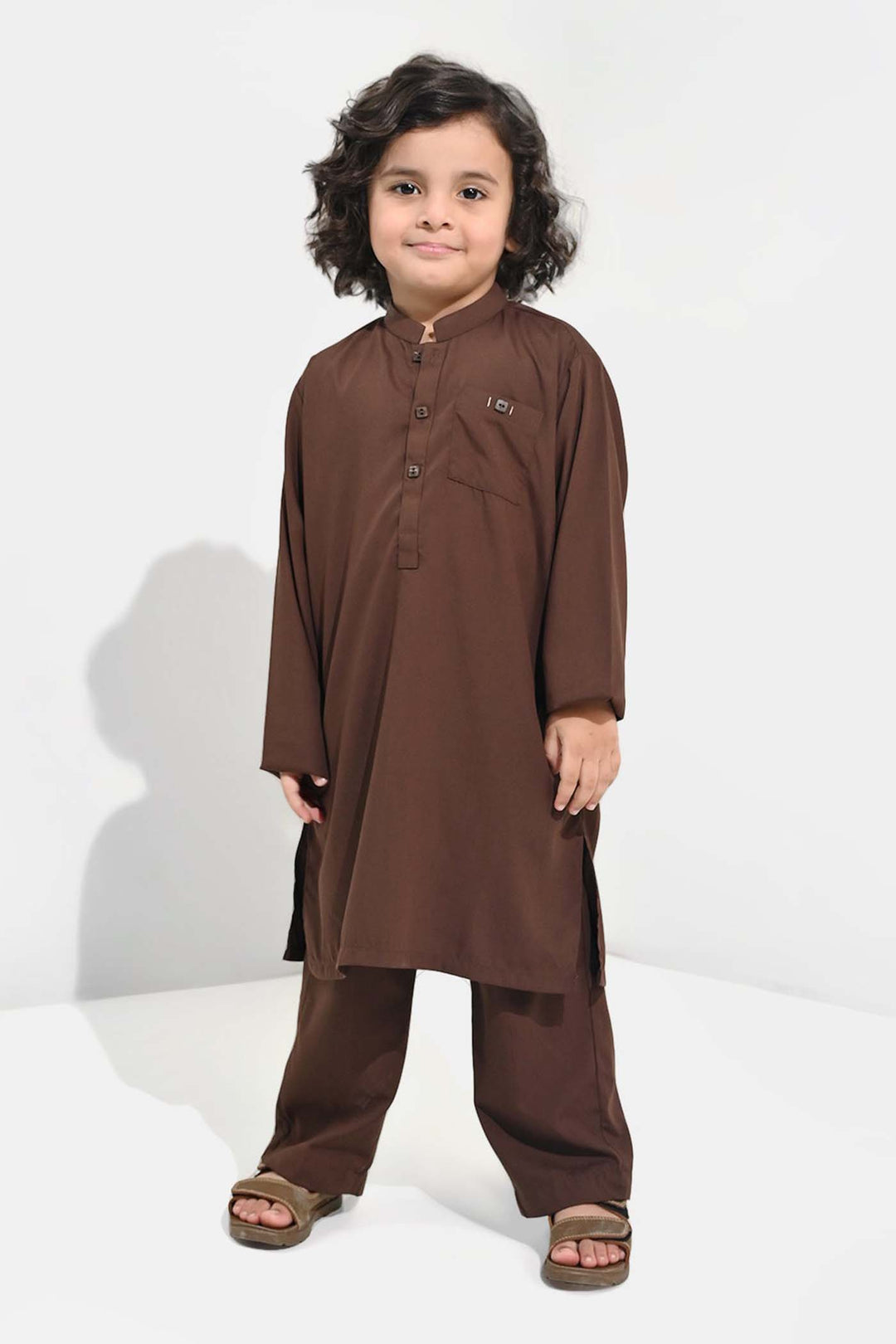 Boys Poly Viscose Kurta Pajama (Front PKT)-BROWN