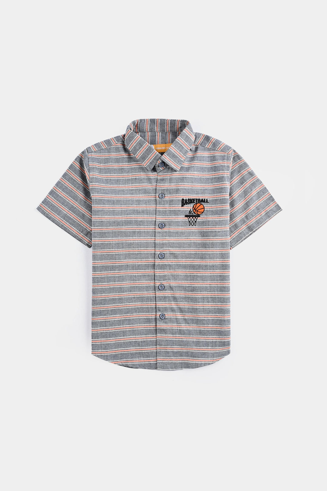 Boys Yarn Dyed Shirt F/S (Ready To Explore) - G/Stripe