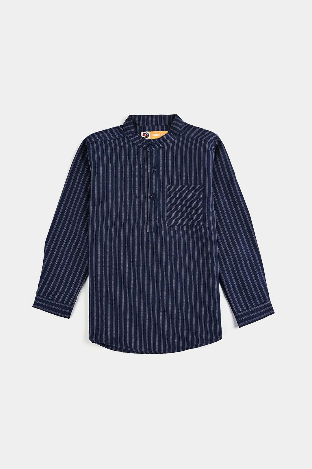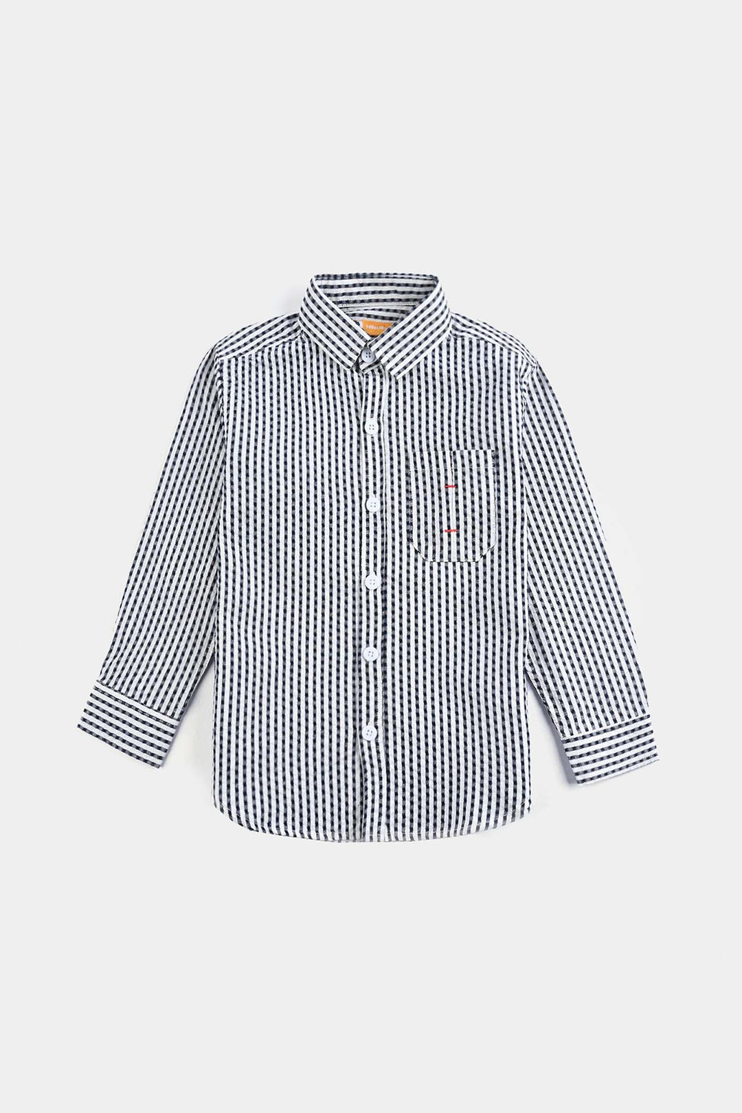 Boys Cotton Shirt F/S (Textured Stripe) - NAVY