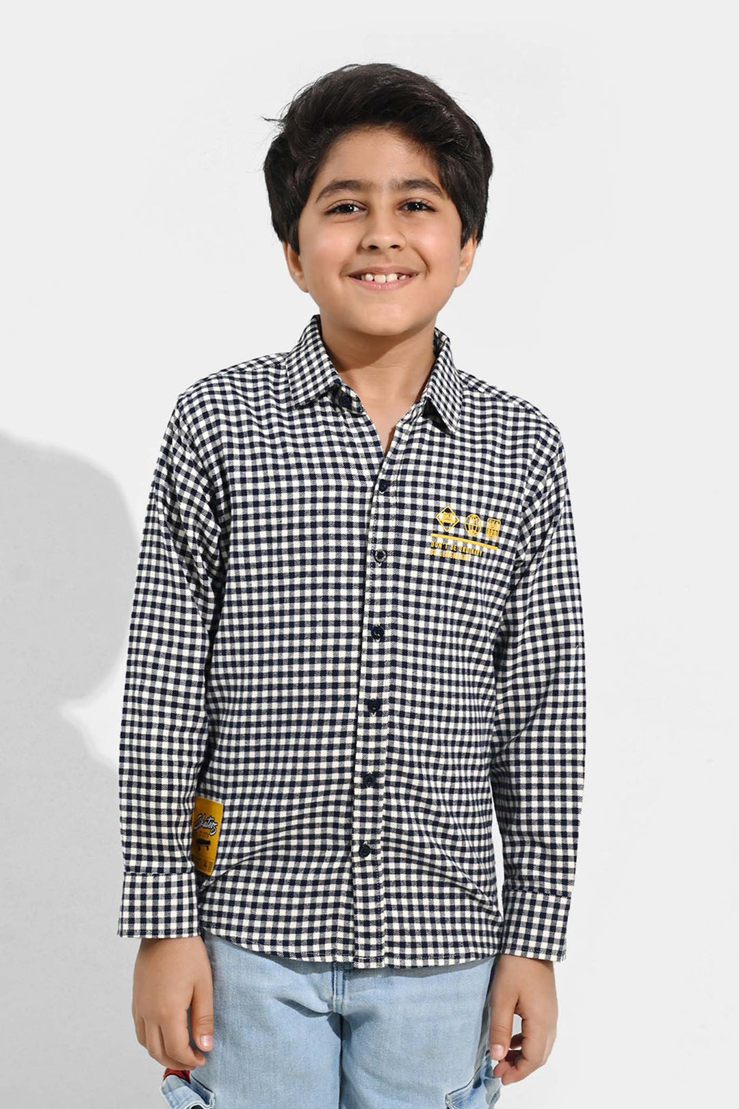 Boys Yarn Dyed Shirt (Brown Thread)-BLACK