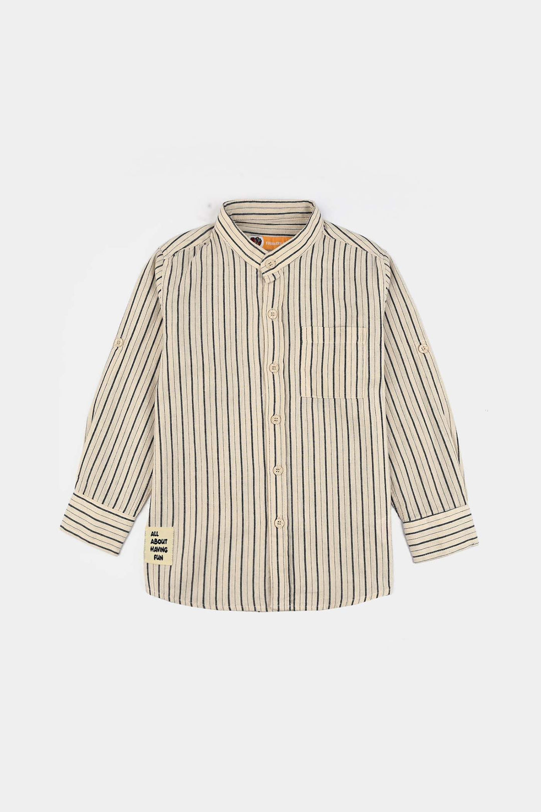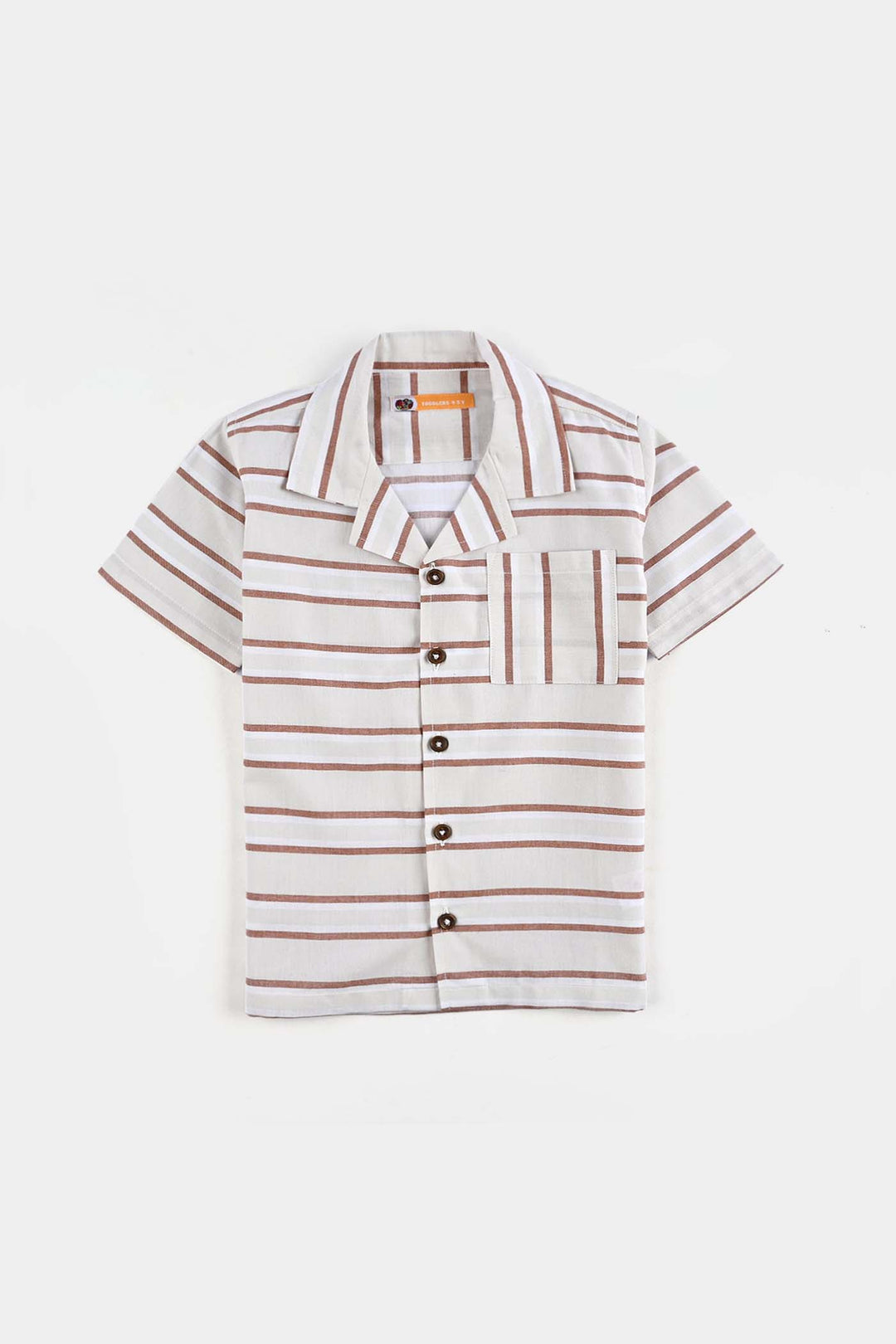 Boys Yarn Dyed Shirt H/S (Choco Lines) - Beige Stripes