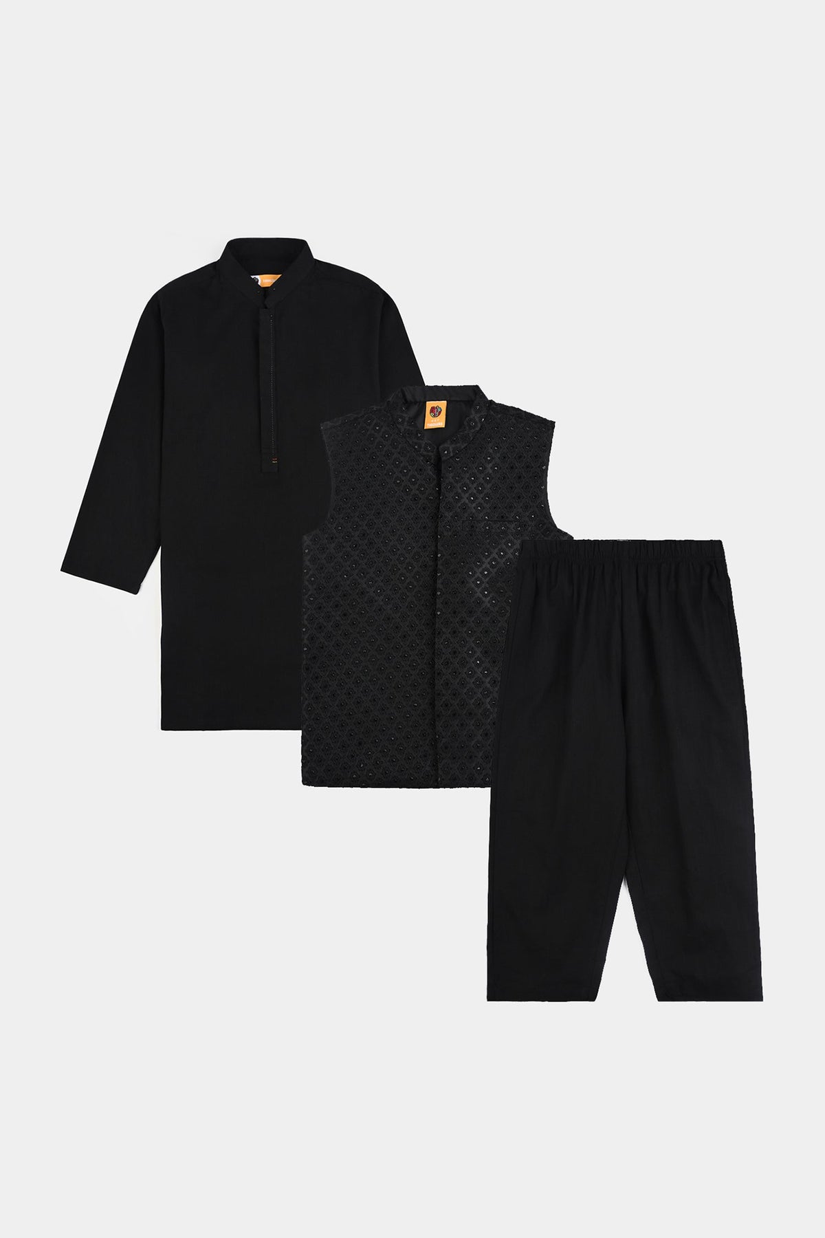 Bachaa Party brings you the best price Boys Cotton Slub 3 Piece suit (Black Beauty)-BLACK with express shipping all over Globe.
