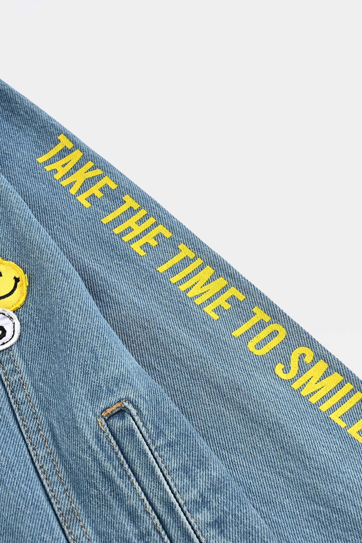 Bachaa Party brings you the best price Boys Denim Stretch Jacket Smile-Light Blue with express shipping all over Globe.