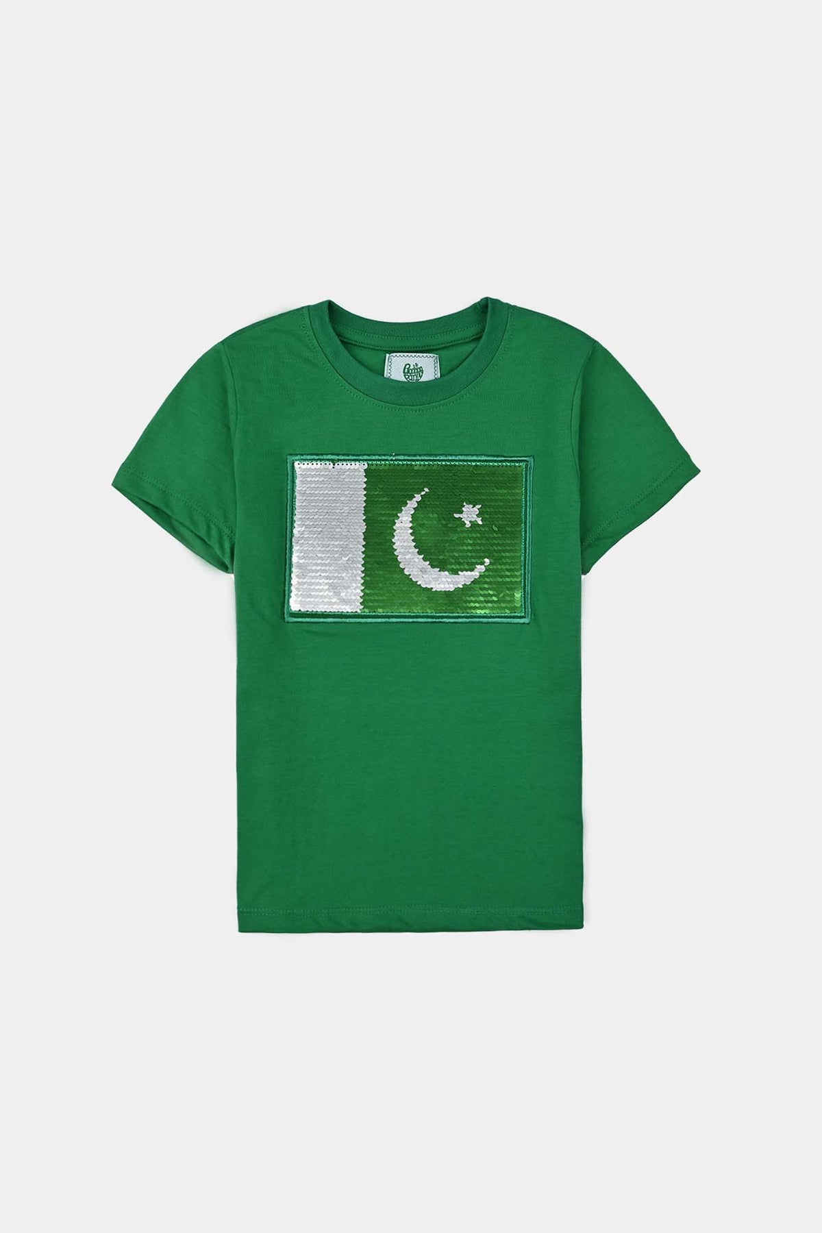 Unisex Poly Cotton Jersey T-Shirt H/S SEQUINS FLAG-Joly Green
