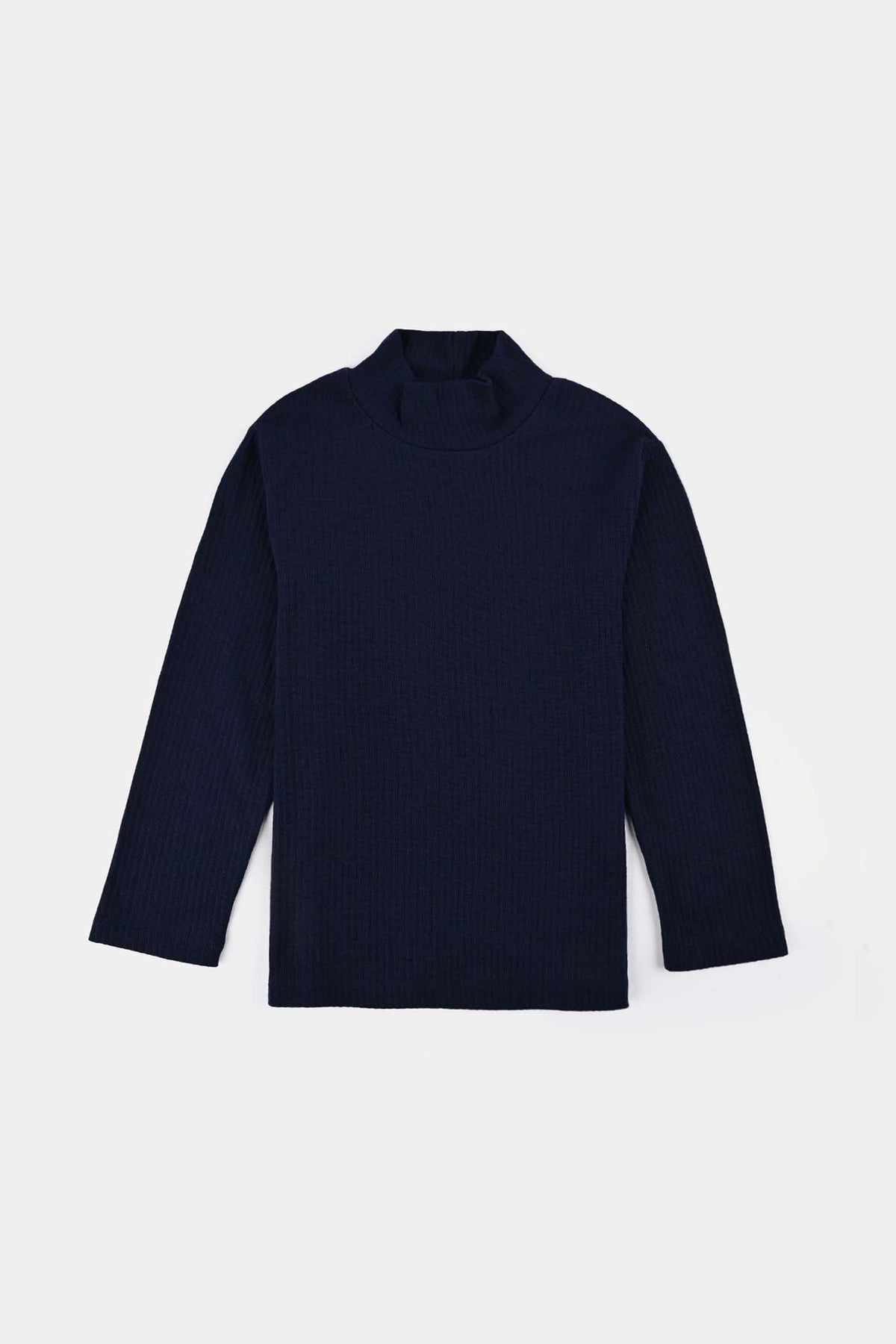 Boys Rib Turtle Neck T-Shirt - NAVY