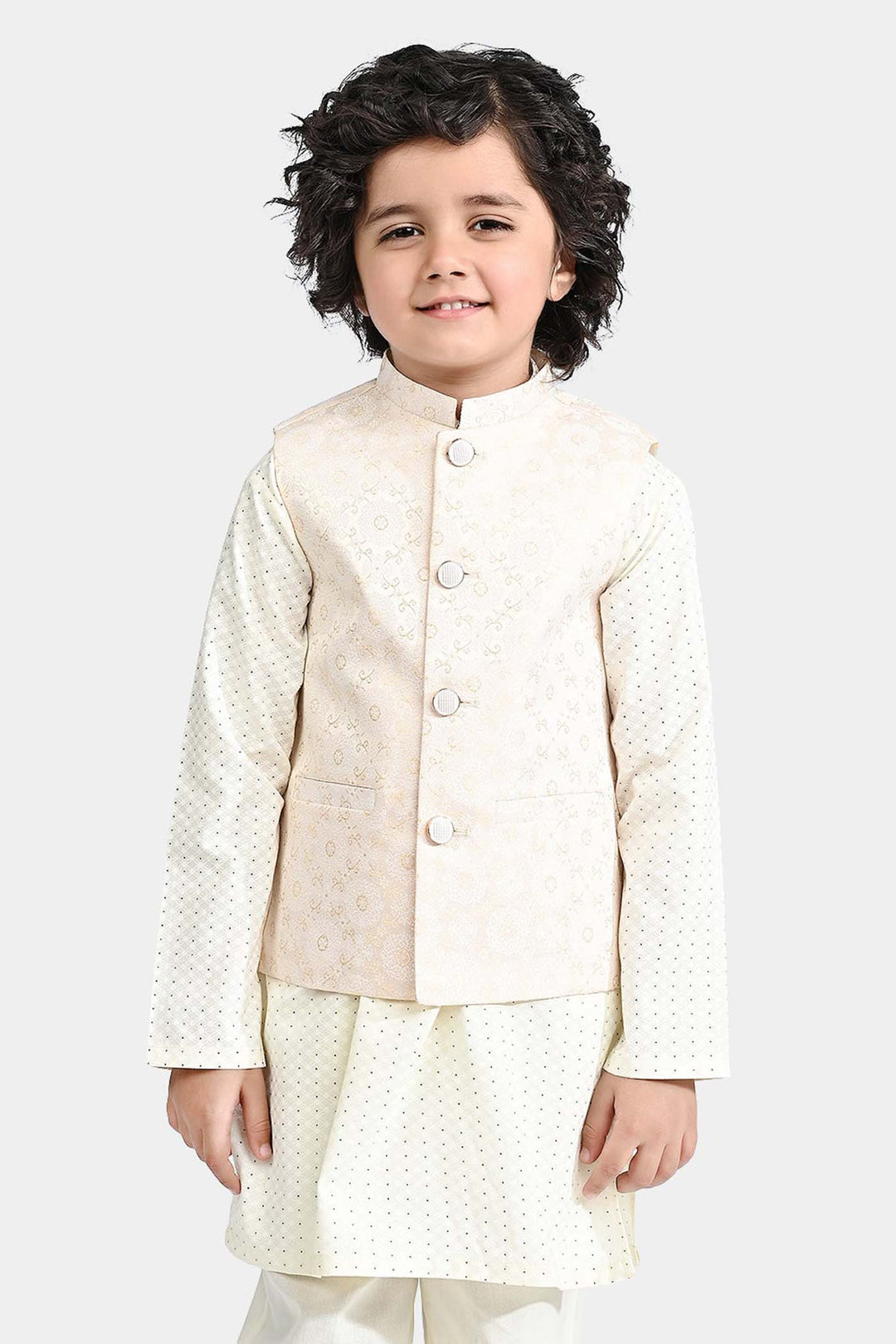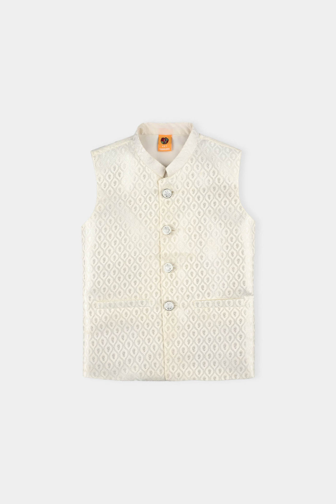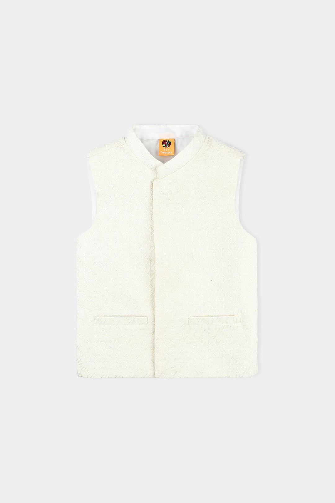 Boys Poly Viscose Waistcoat (Self Pattern)-Off White