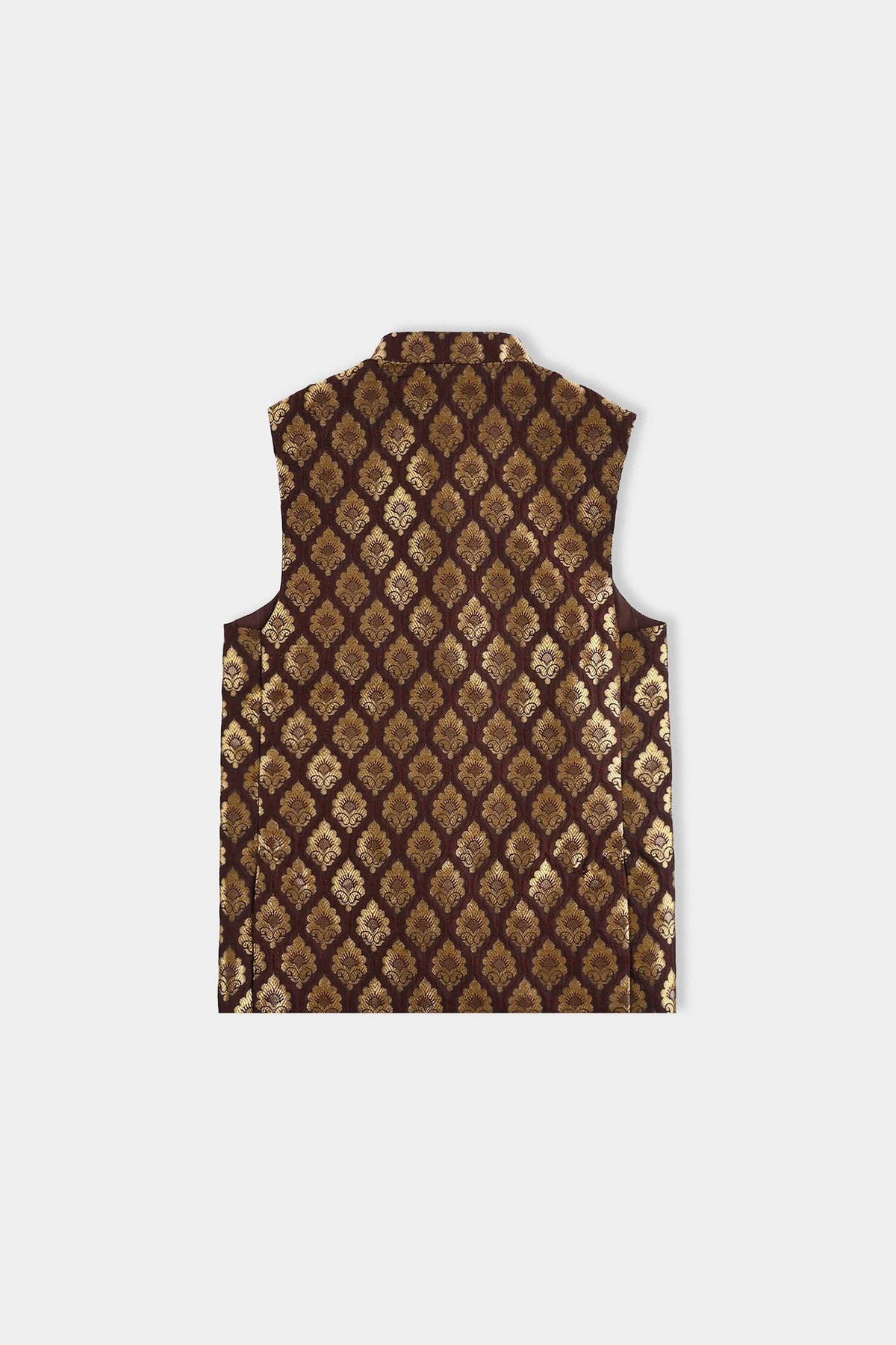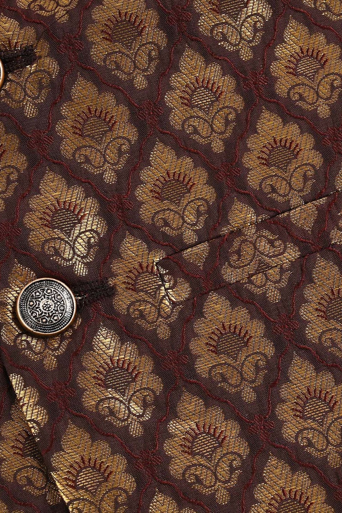 Dress him like a little gentleman. This brown-gold waistcoat, made from soft poly viscose, adds polished charm to the look, perfect for formal occasions where your little man steals the spotlight.