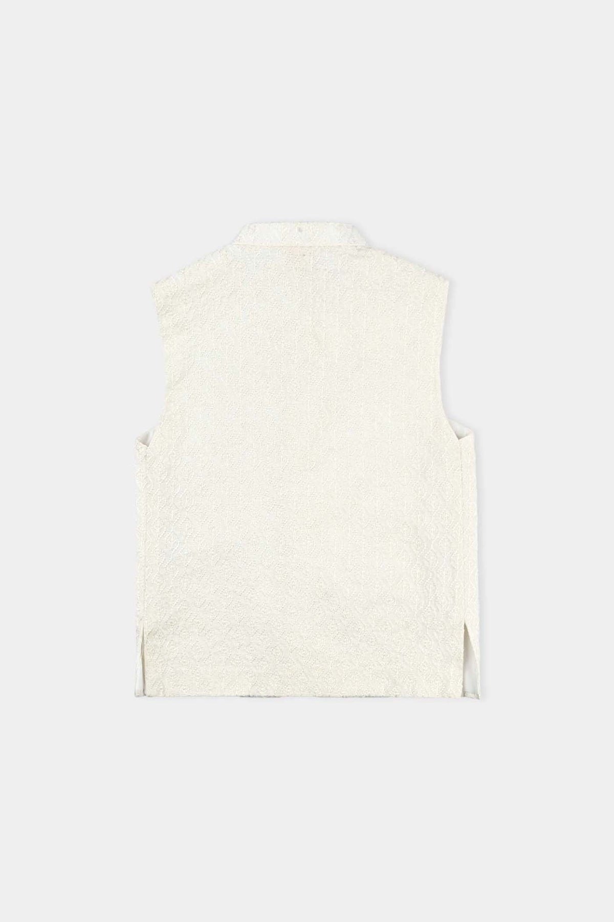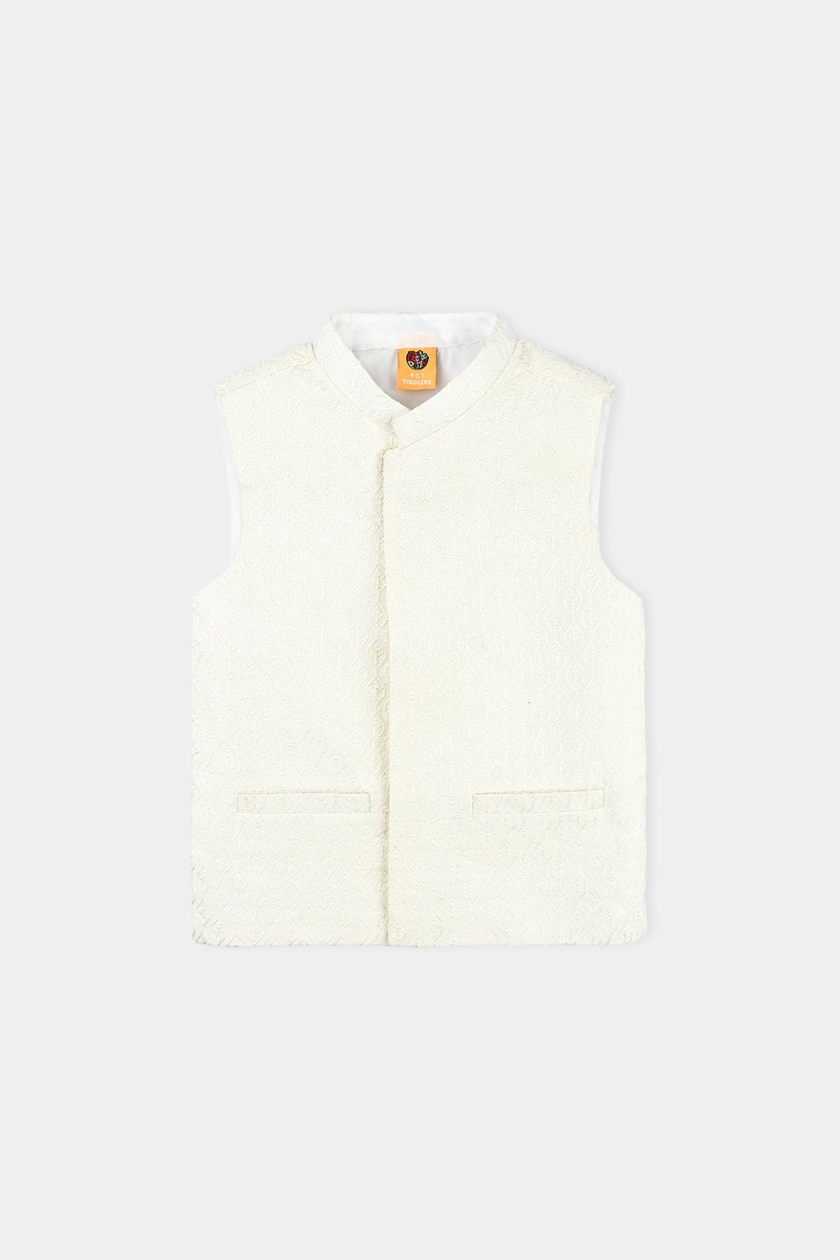 Complete your festive look with this waistcoat. It is enriched with intricate threadwork for a regal vibe.
