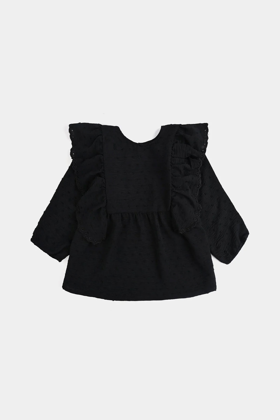 Girls Cotton Emb Top Maroon Ruffles-BLACK
