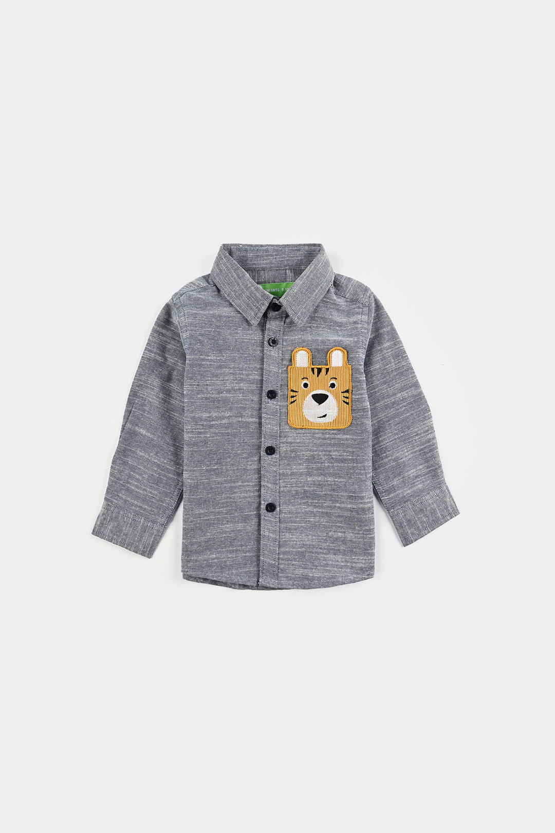 Infant Boys Yarn Dyed Shirt F/S (Bear Here)