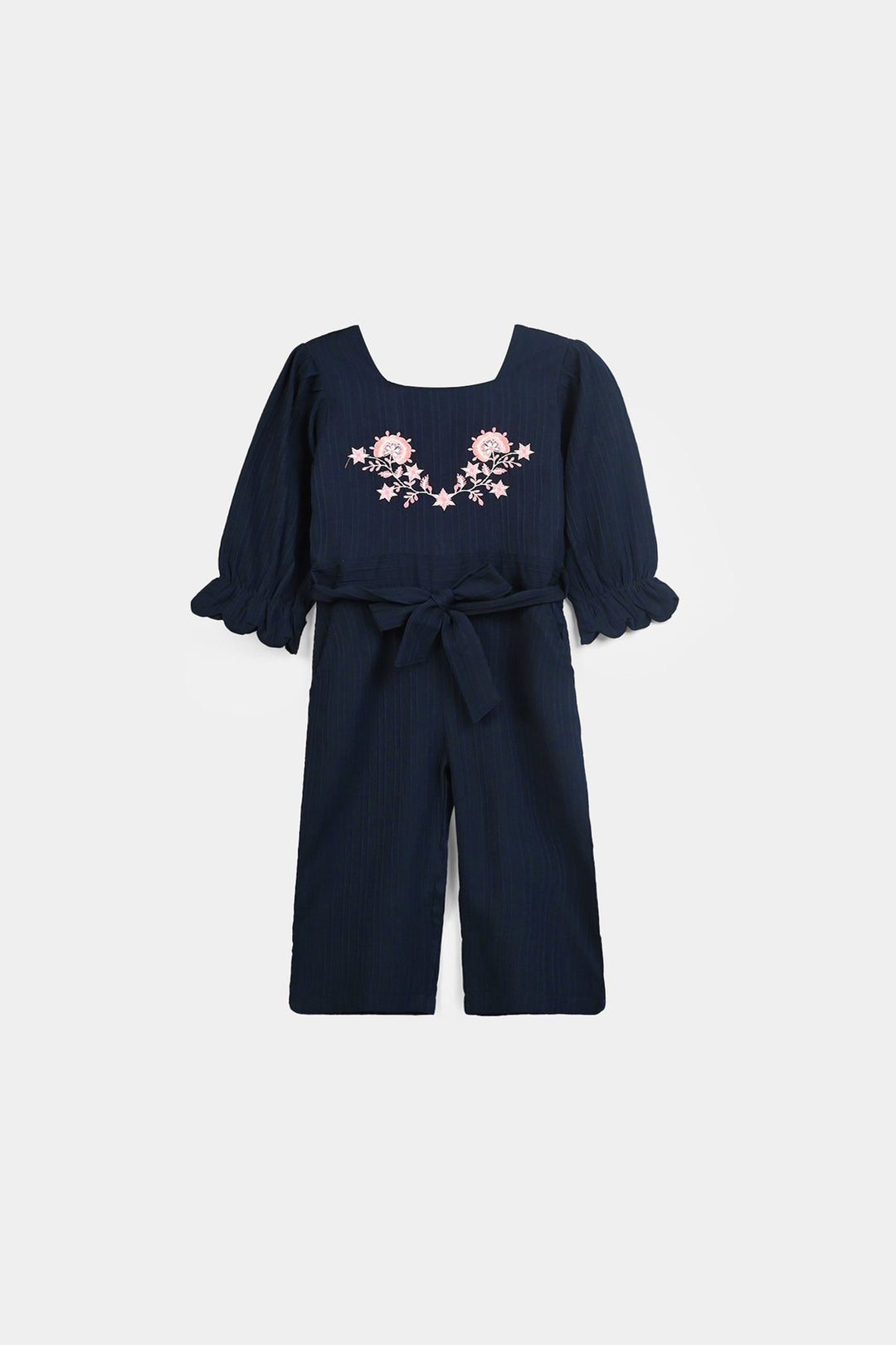Girls Poly Crinkle Emb Jumpsuit Hazel-Navy Blue