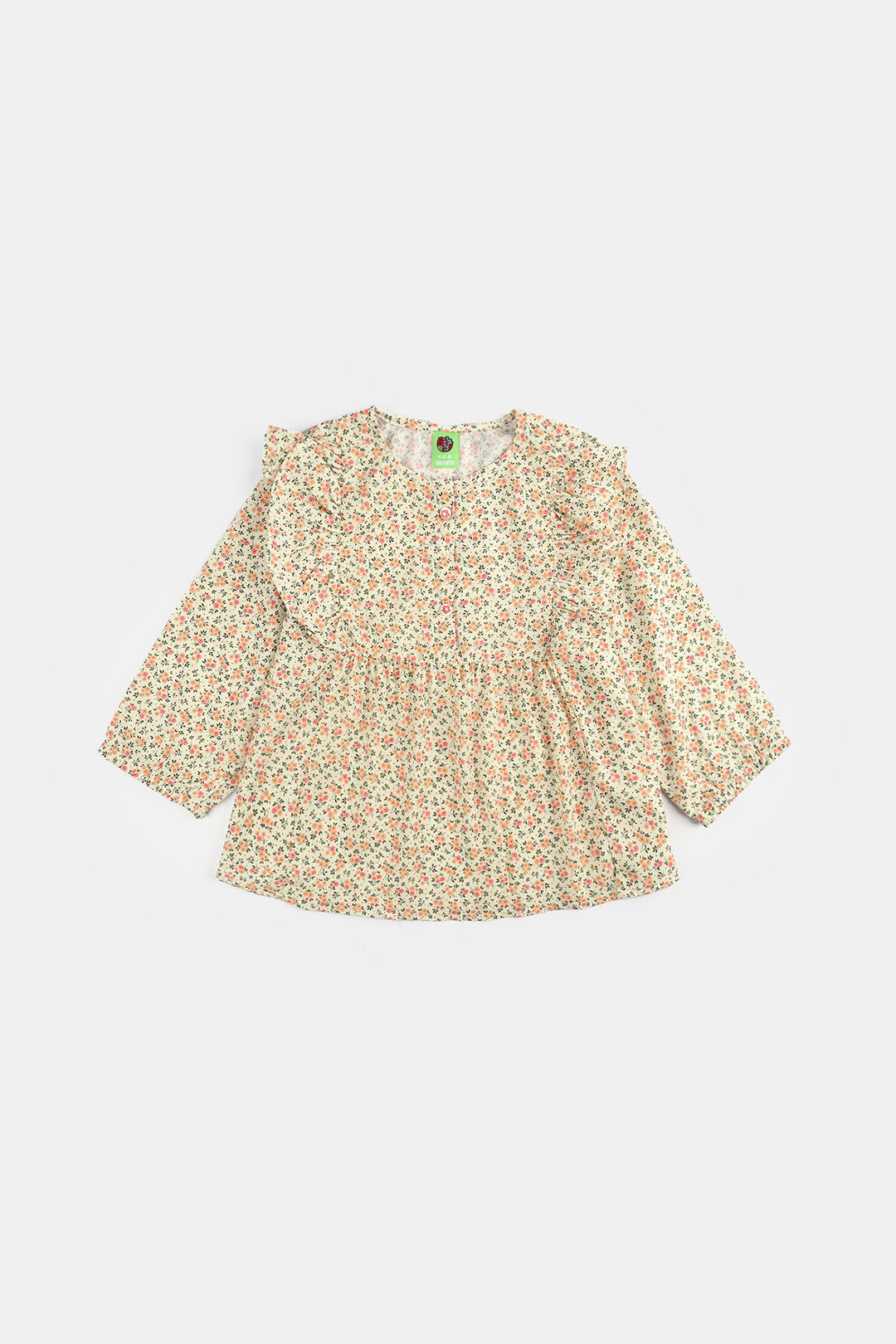 Infant Girls Poly Net Casual Top Yellow Flowers-Cream