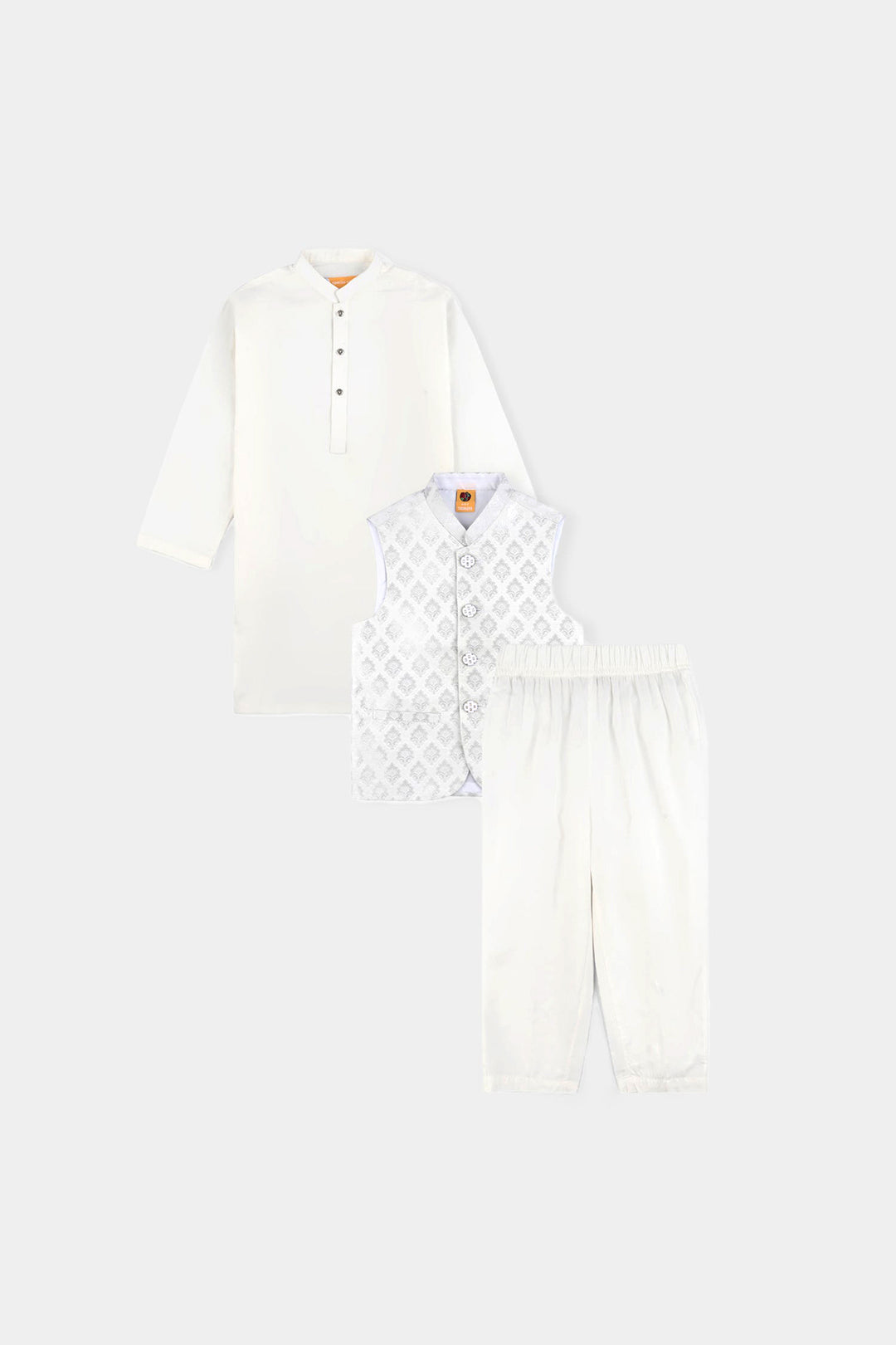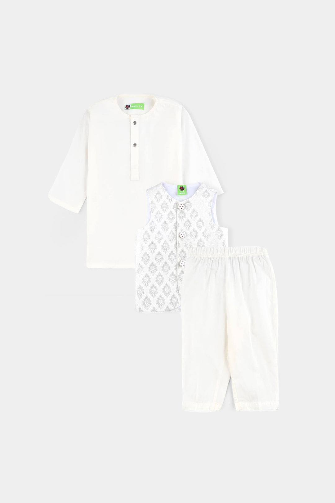 Infant Boys Cotton Poplin 3Piece Suit-White