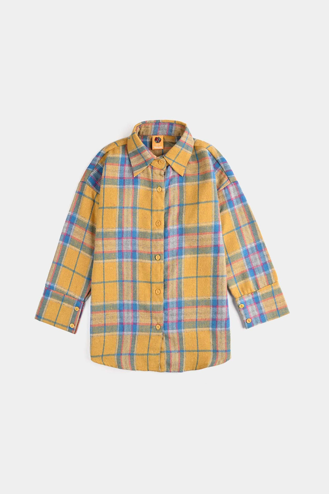 Girls Cotton Emb Top Mustard Checks-Mustard