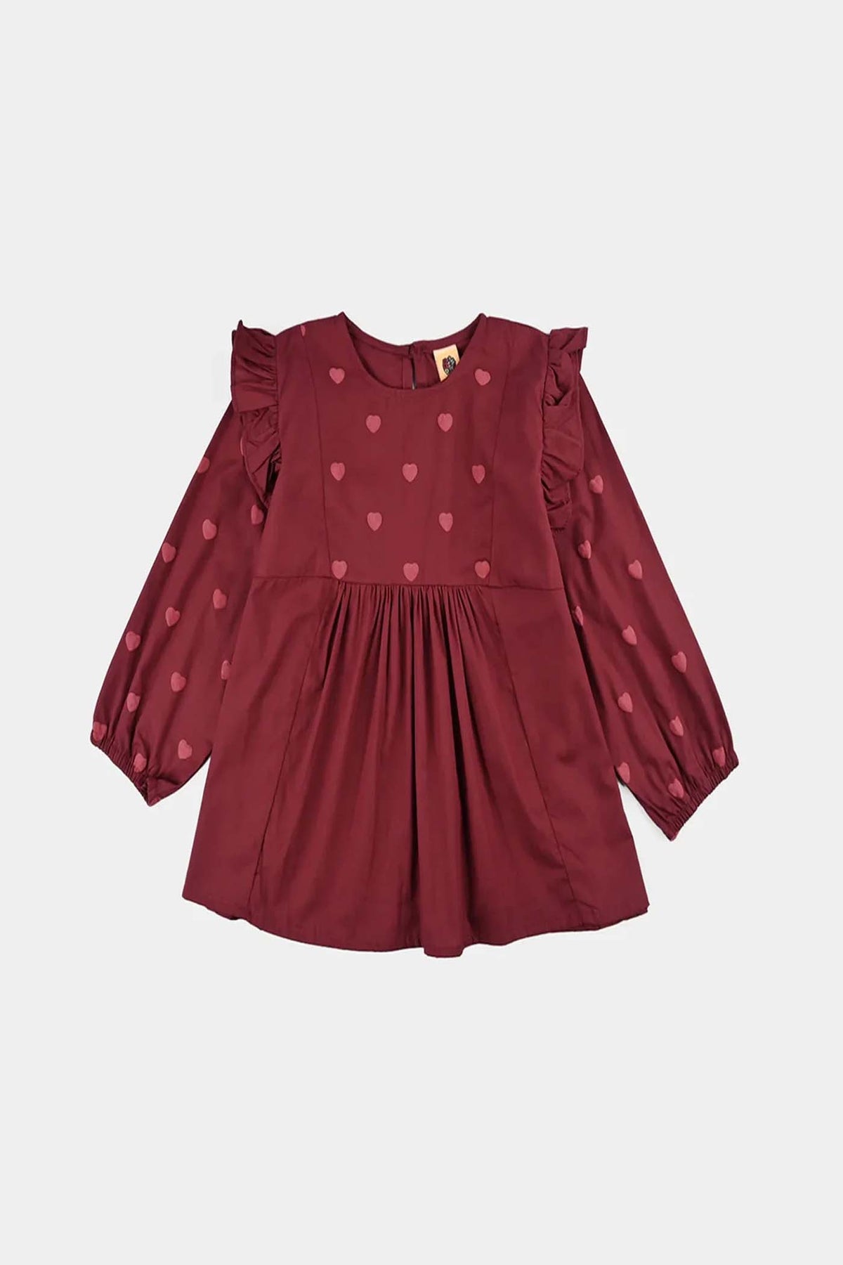 Bachaa Party brings you the best price Girls Cotton Top Puffy Hearts-MAROON with express shipping all over Globe.