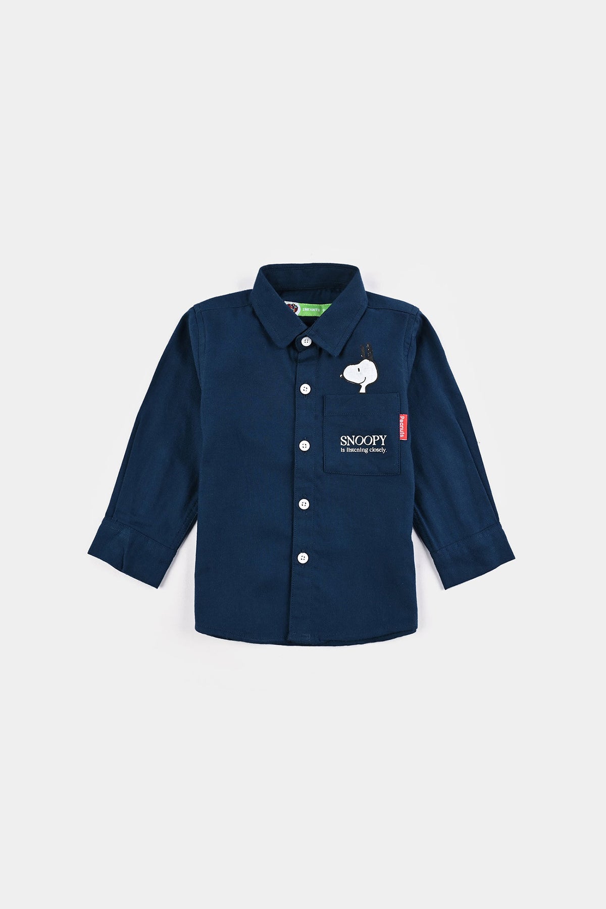Infant Boys Cotton Twill Shirt F/S (Peanuts) - Blue