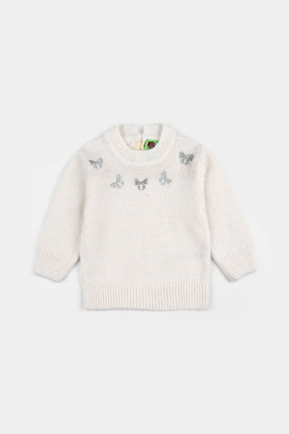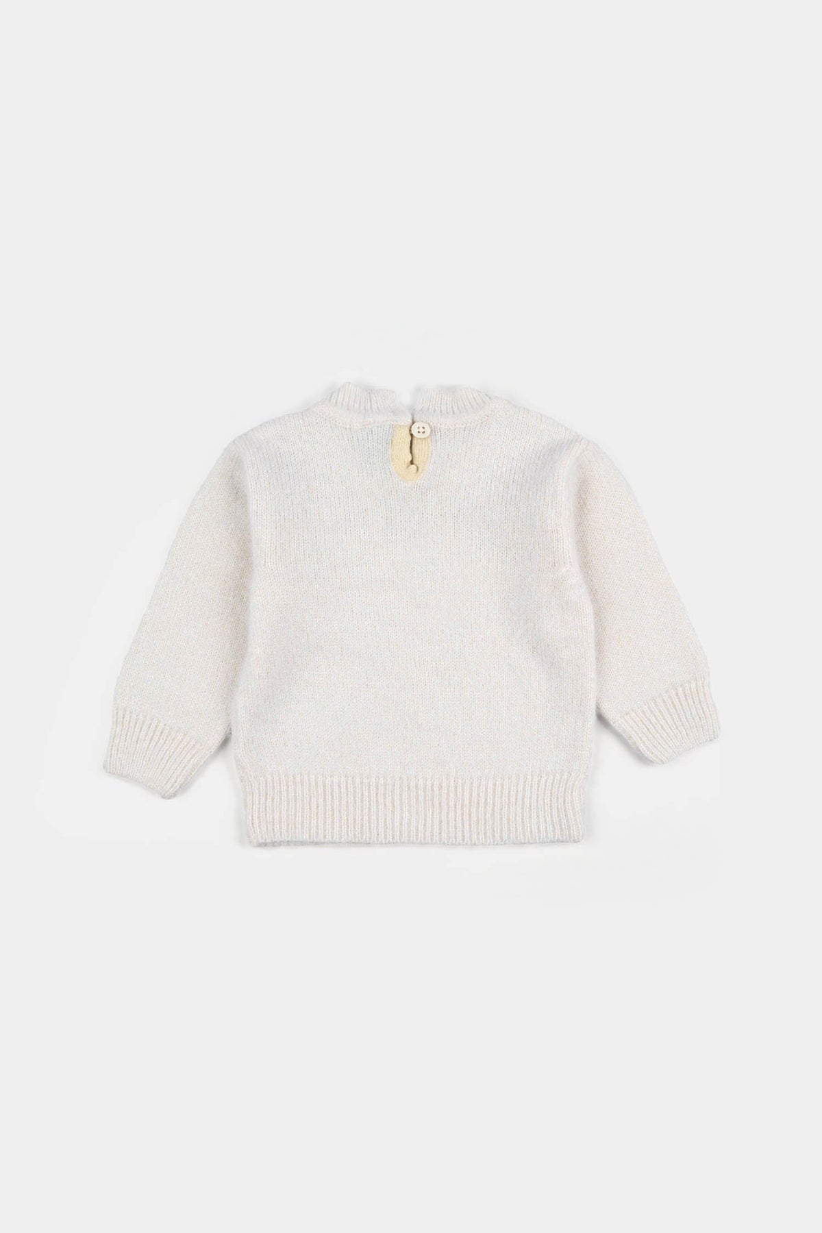 Infant Girls Acrylic-Feather Lurex Sweater-Lurex Bow - Off White
